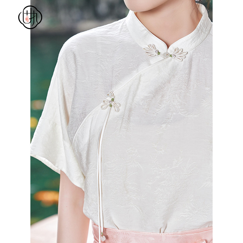 提花小衫 固执夏季 斜襟立领盘扣短袖 中式 80142SY09261 新款