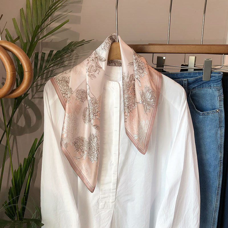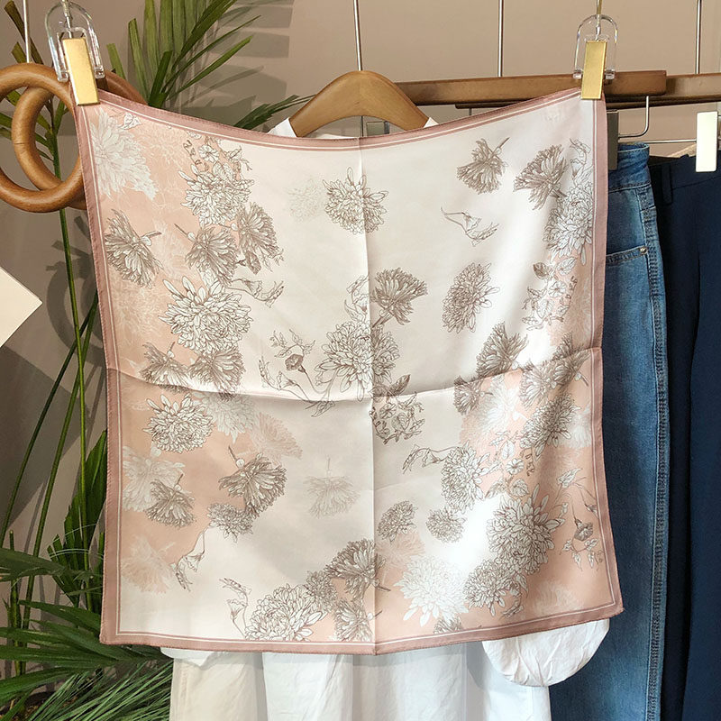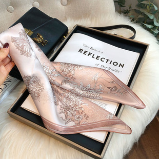 100%桑蚕丝丝巾女2025新款 小方巾护颈椎百搭粉色真丝小领巾搭衬衫