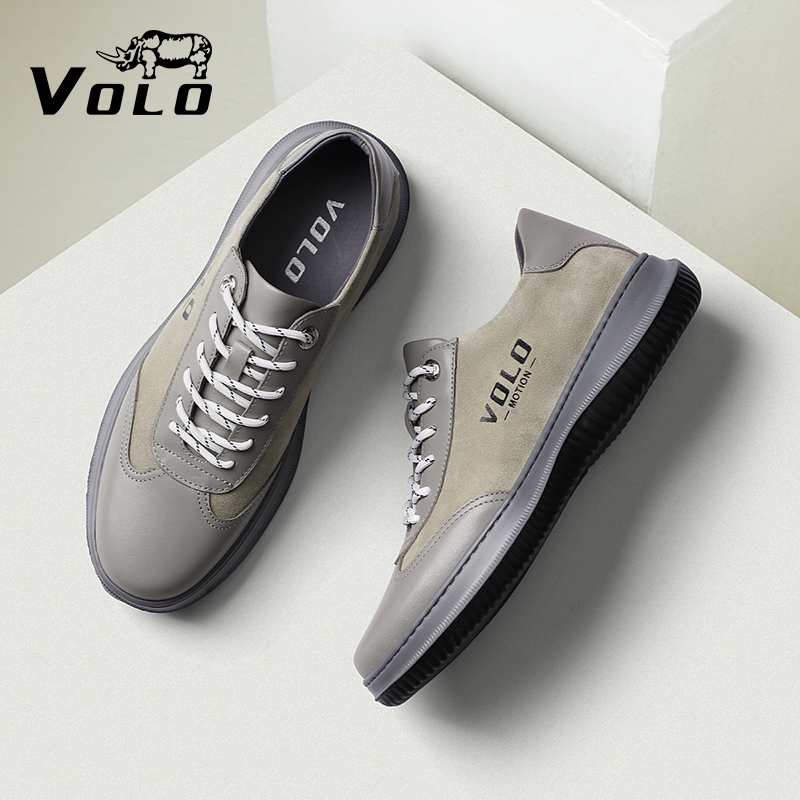 犀牛男士 真皮品牌男鞋 软底运动鞋 透气休闲皮鞋 牛皮厚底 秋季 VOLO