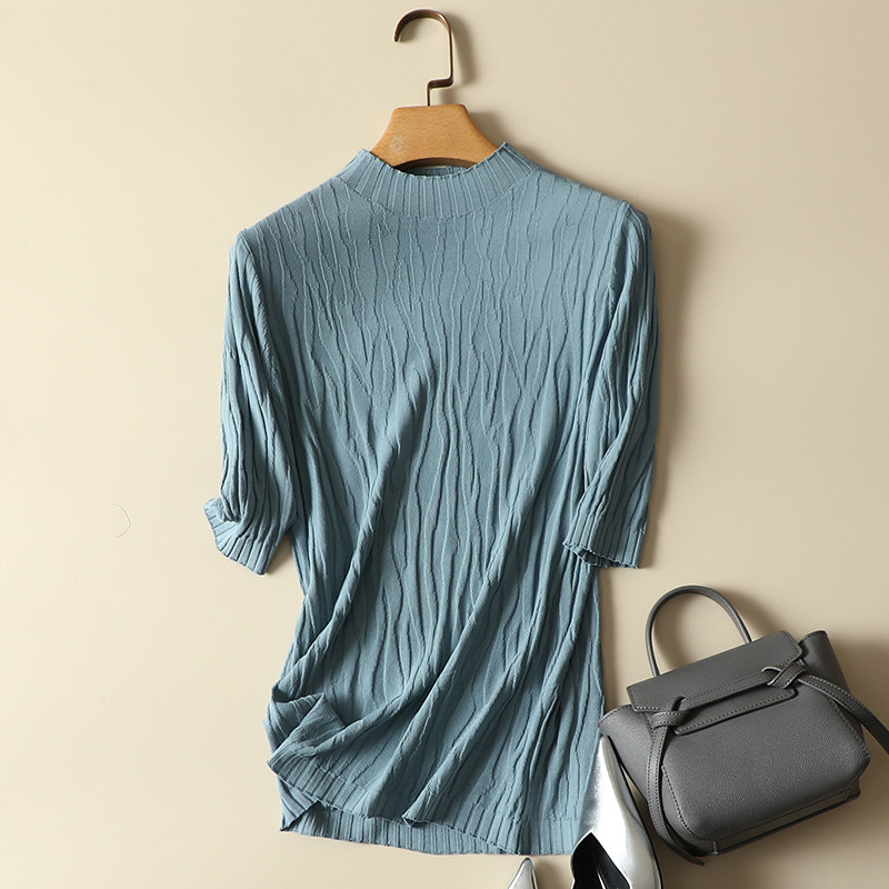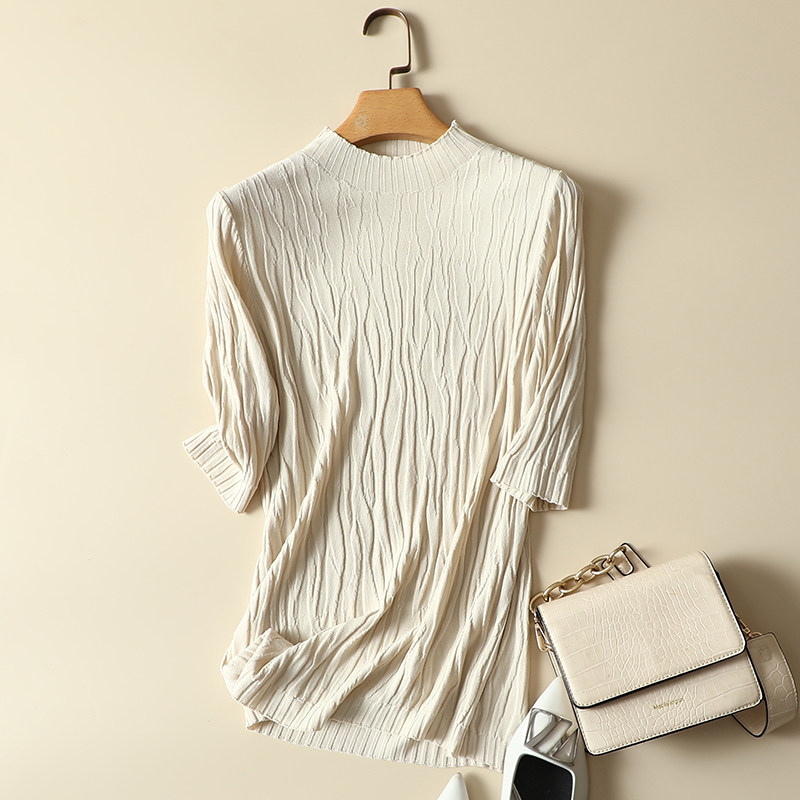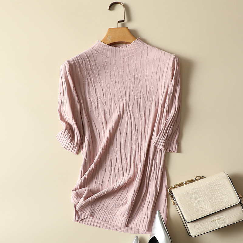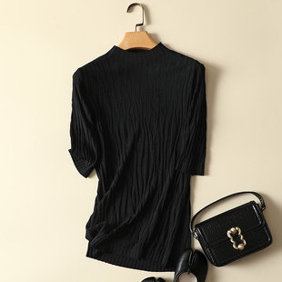 内搭半高领上衣宽松短袖 春装 女薄款 冰丝针织打底衫 t恤 2024年新款