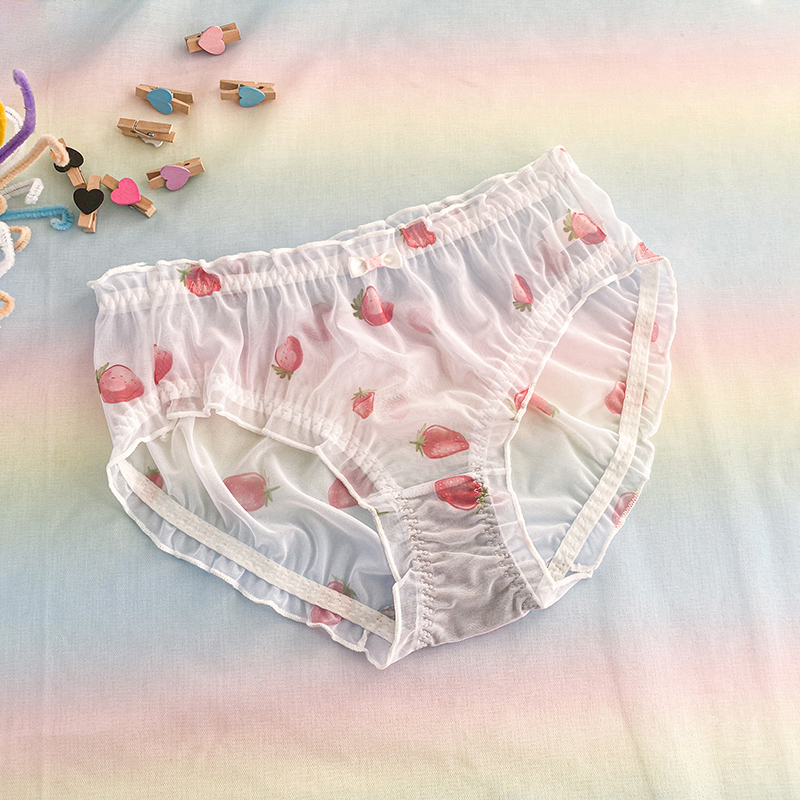 女胖mm200斤中腰蕾丝日系可爱网纱透明舒适薄透气三角裤 大码 内裤
