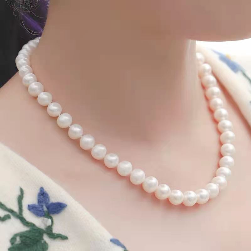 正品 天然淡水珍珠项链白色强光近圆形锁骨链女节日送妈妈婆婆长款
