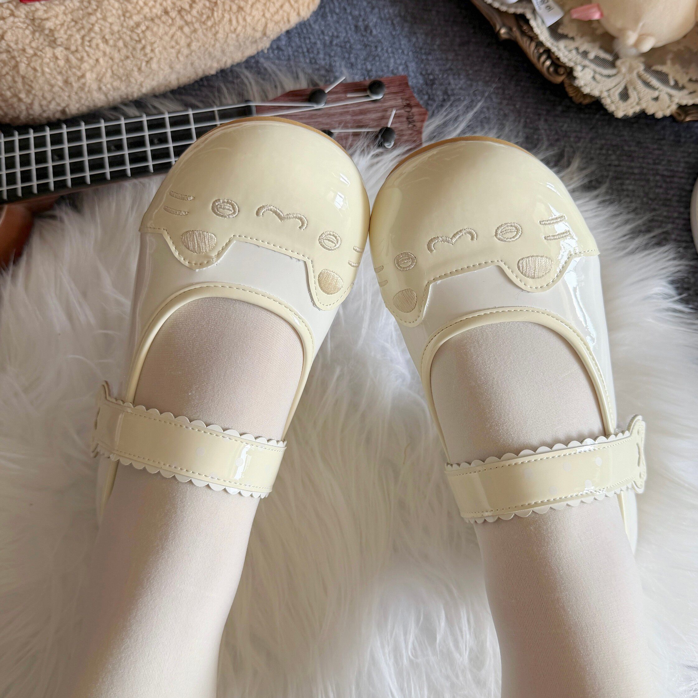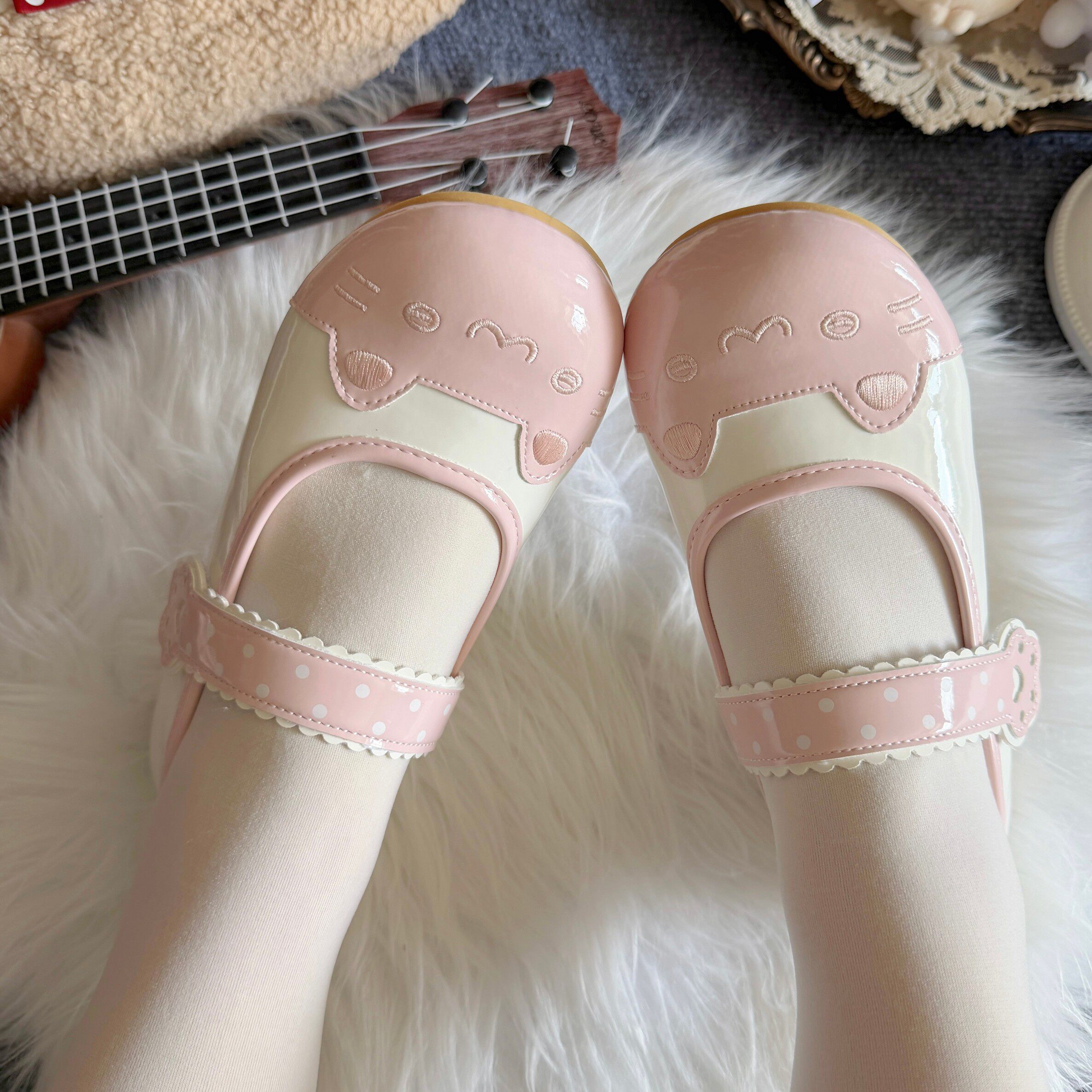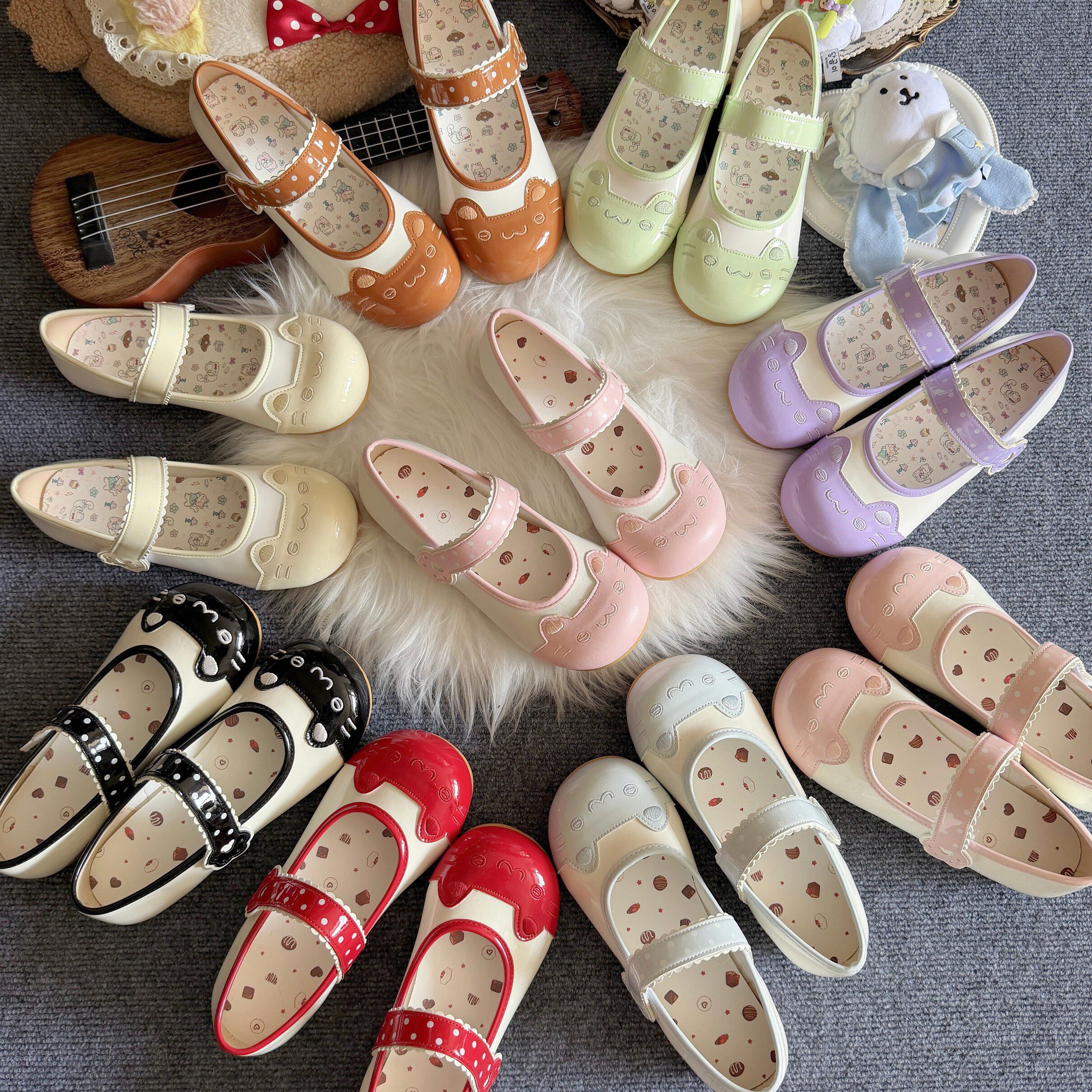 甜美刺绣日系lo鞋 小猫饼室内鞋 可爱平底大头鞋 夏季 2026新款