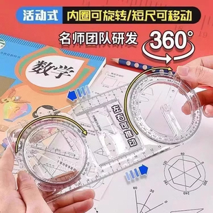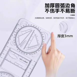 中小学多功能绘图尺子测绘套装 三角直尺椭圆格尺量角画圆镂空手抄报制图 高中生可旋转数学函数几何图形尺套装