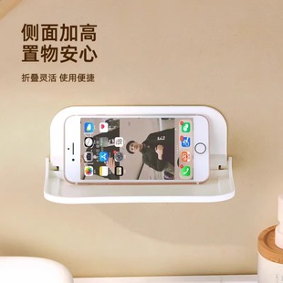 可折叠墙上置物架卫生间厕所手机收纳宿舍床头免打孔托盘机顶盒架