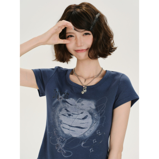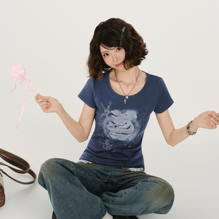 修身 Girlyhalo美式 新款 t恤女夏季 显瘦上衣 复古辣妹拼蕾丝正肩短袖