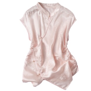 别致修身 新款 不规则小包袖 夏季 国风上衣 真丝桑蚕丝花罗衬衫 新中式