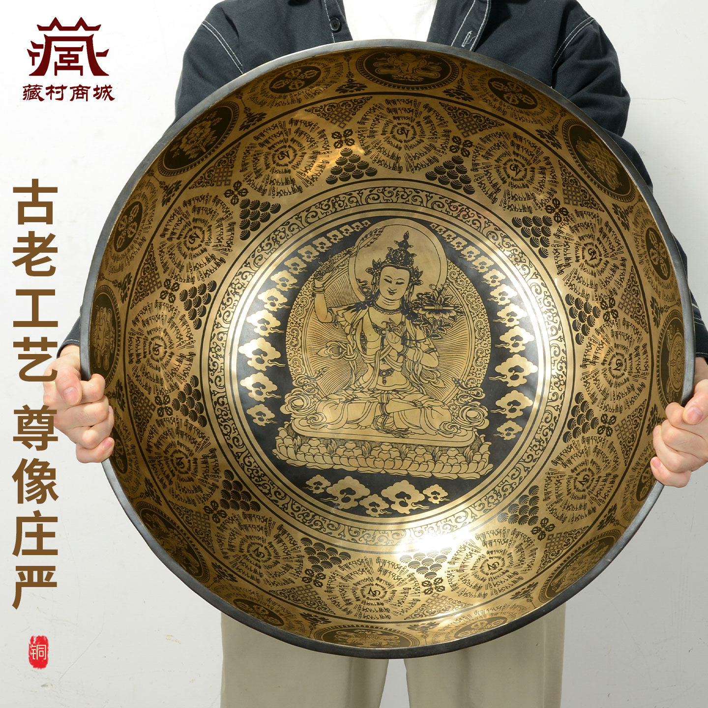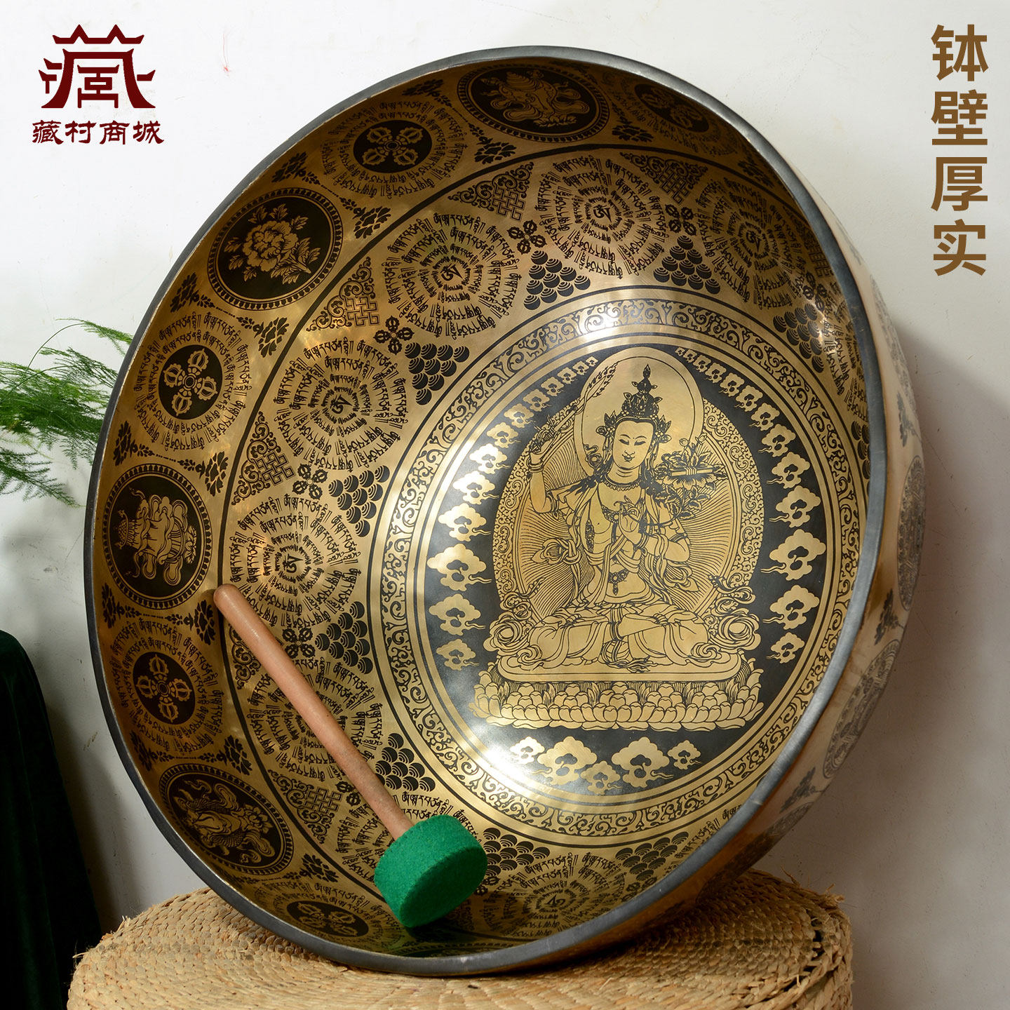 藏村文殊菩萨大钵雕花颂钵瑜伽冥想钵静心铜钵佛像颂钵钵音碗钵盂