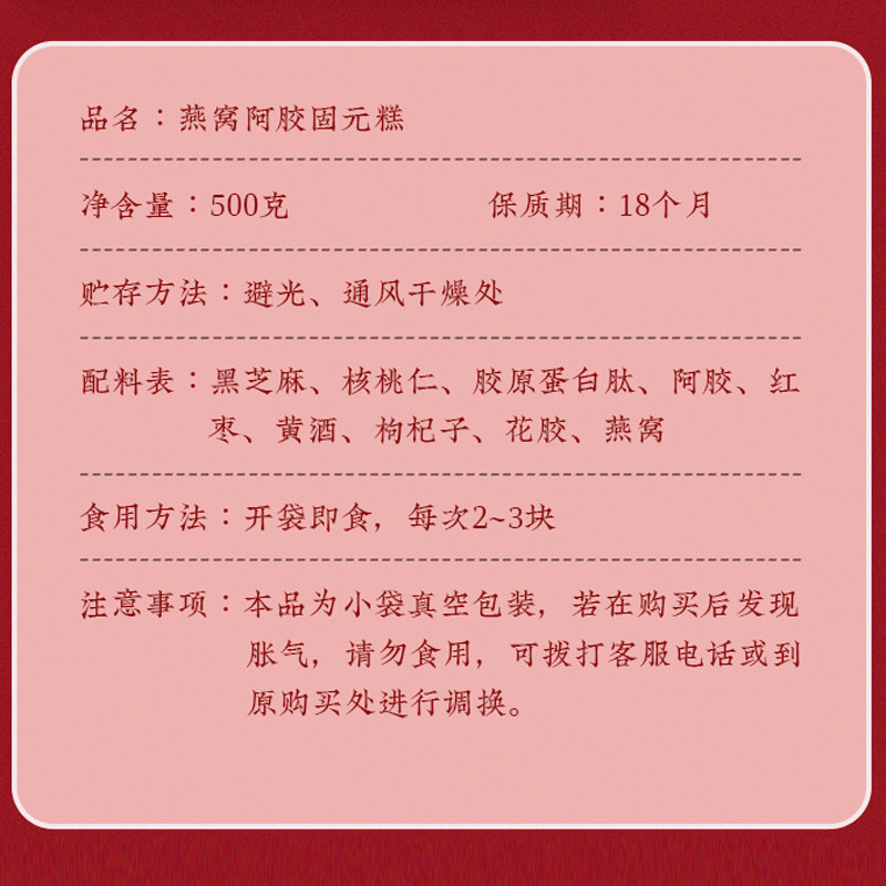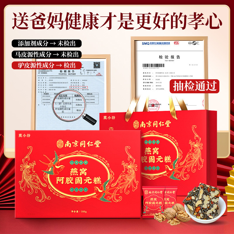 南京同仁堂燕窝阿胶糕礼盒500g固元 糕膏送礼长辈妈妈礼物气血补品