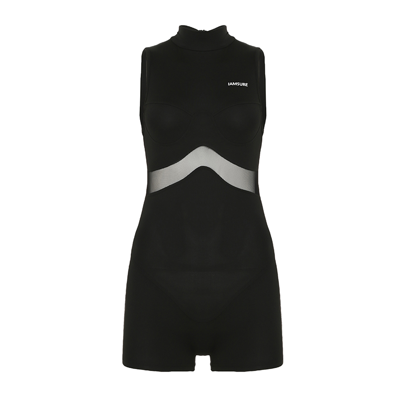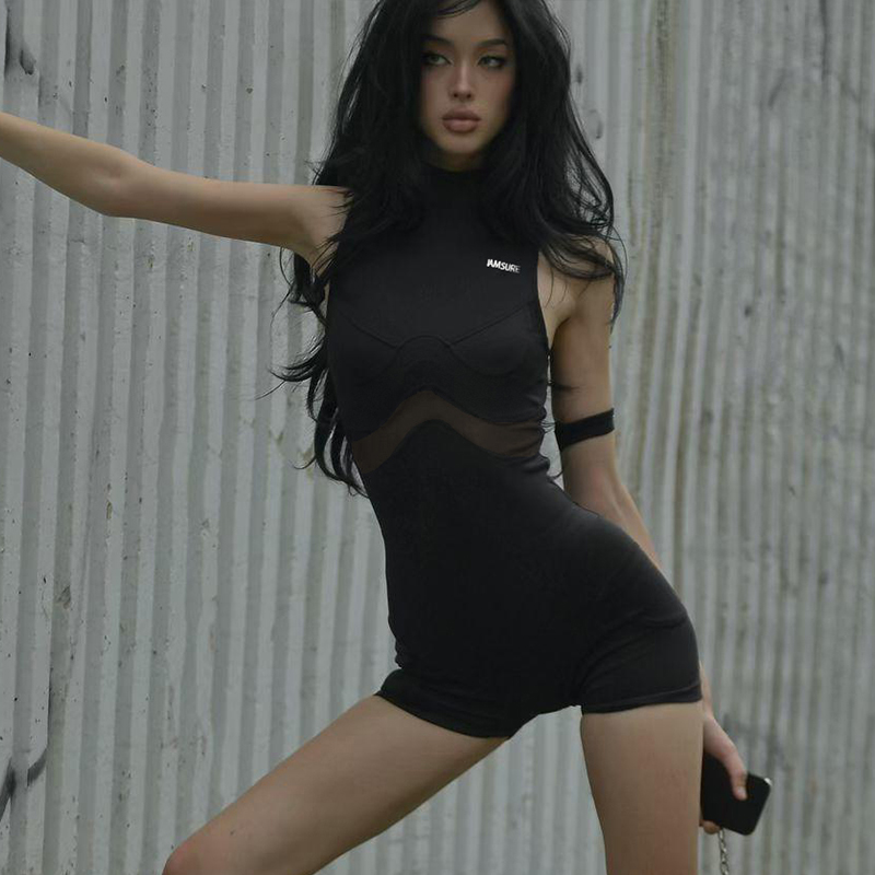 运动裤 女健身跑步短裤 辣妹字母小标网纱拼接连体裤 DARLINGAGA美式
