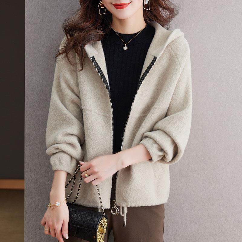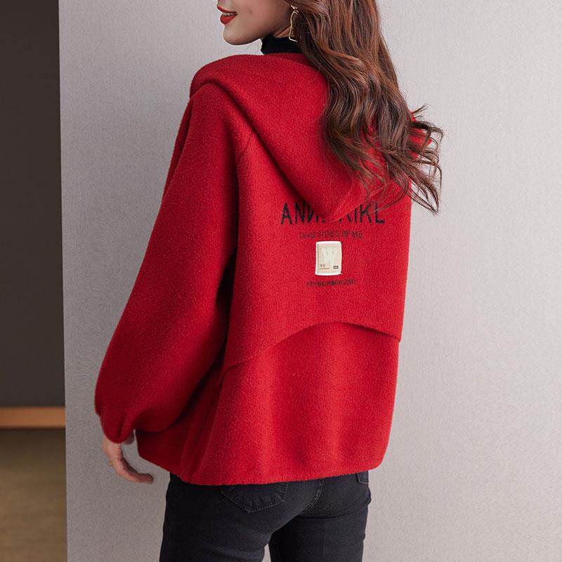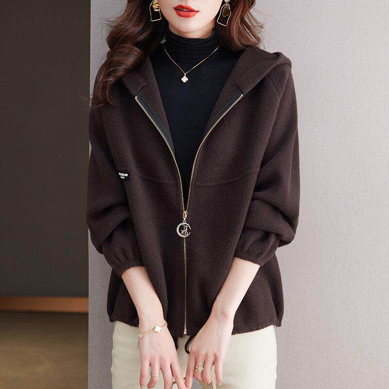 爆款 毛呢短款 春秋季 洋气拉链连帽卫衣短款 妈妈时尚 外套女2025新款