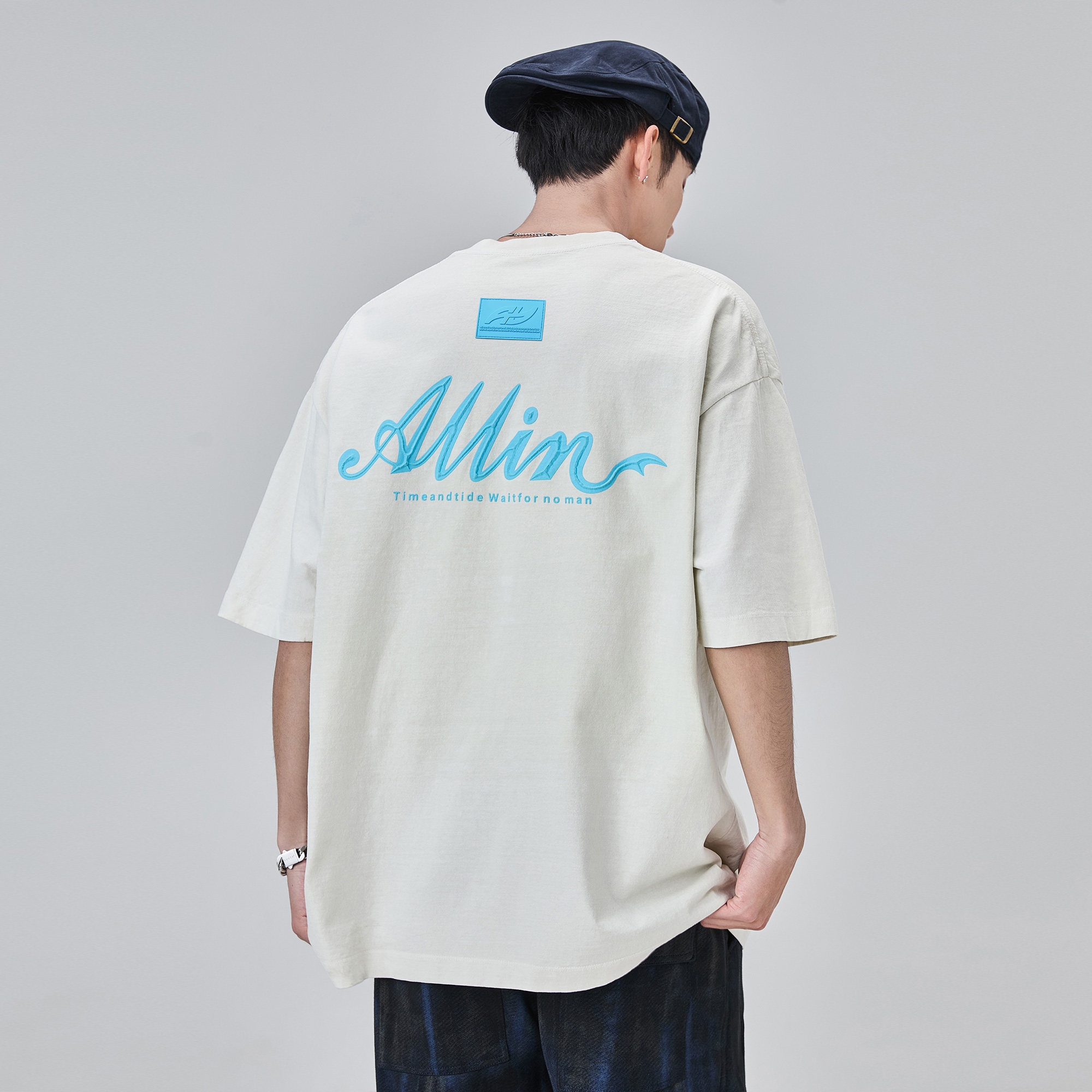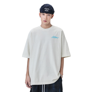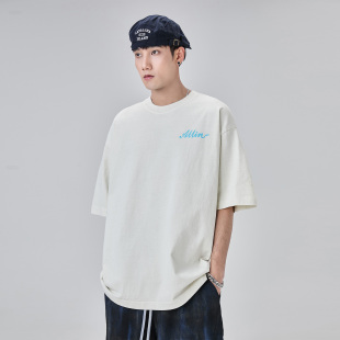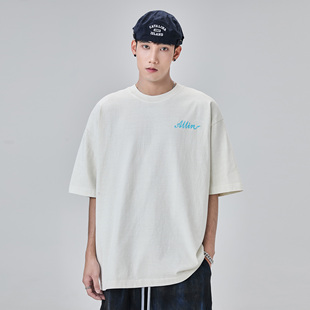 字母印花情侣纯棉半袖 ALLIN 新款 T恤男2026夏季 上衣 白色重磅短袖