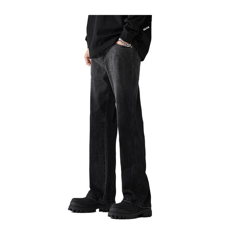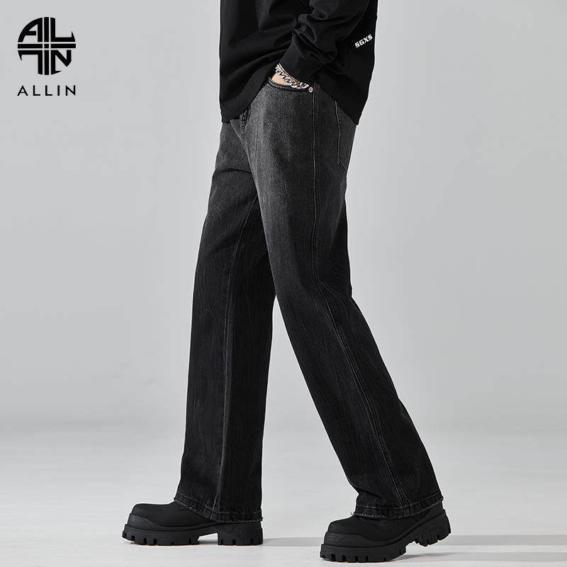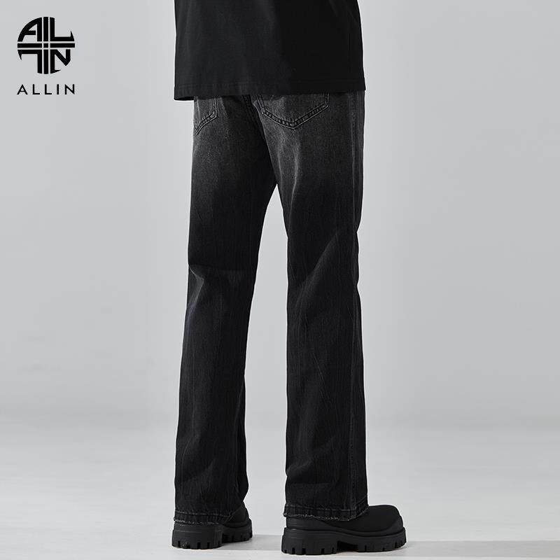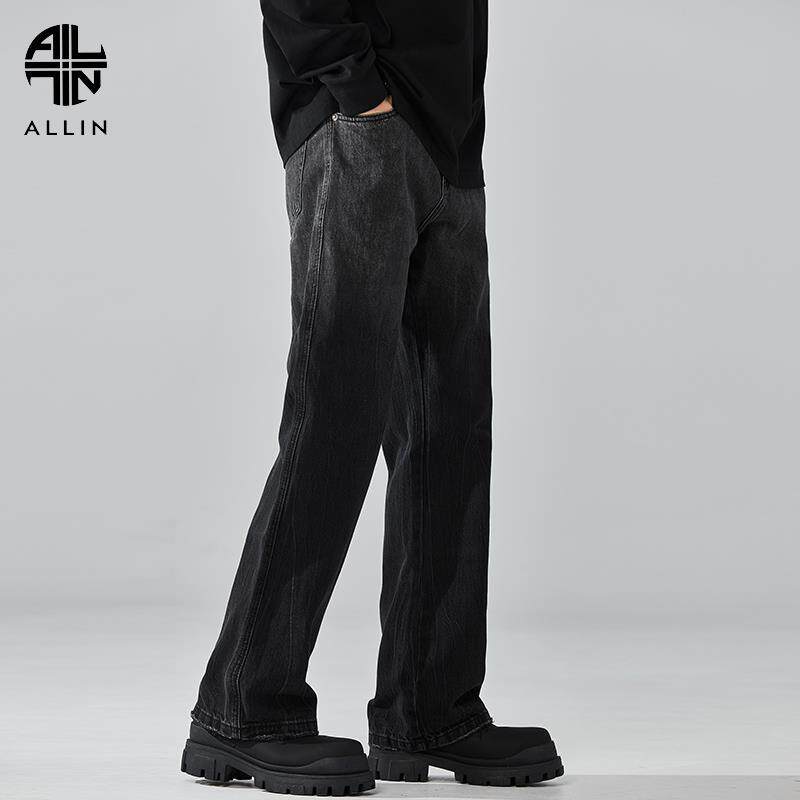 高街潮牌潮流阔腿裤 ALLIN 子美式 男垂感直筒宽松微喇裤 黑色牛仔裤