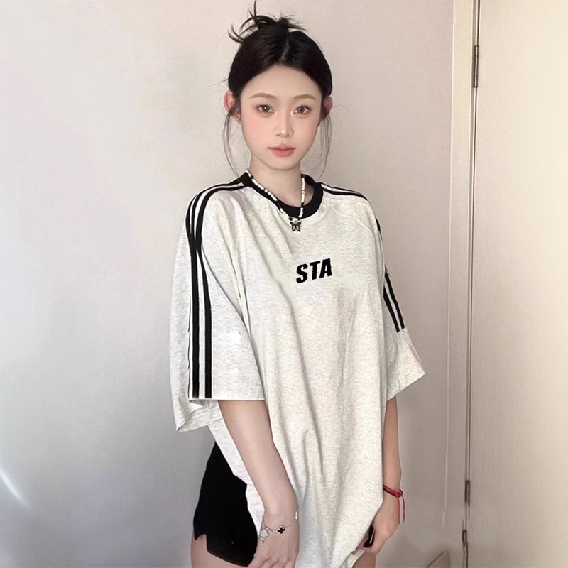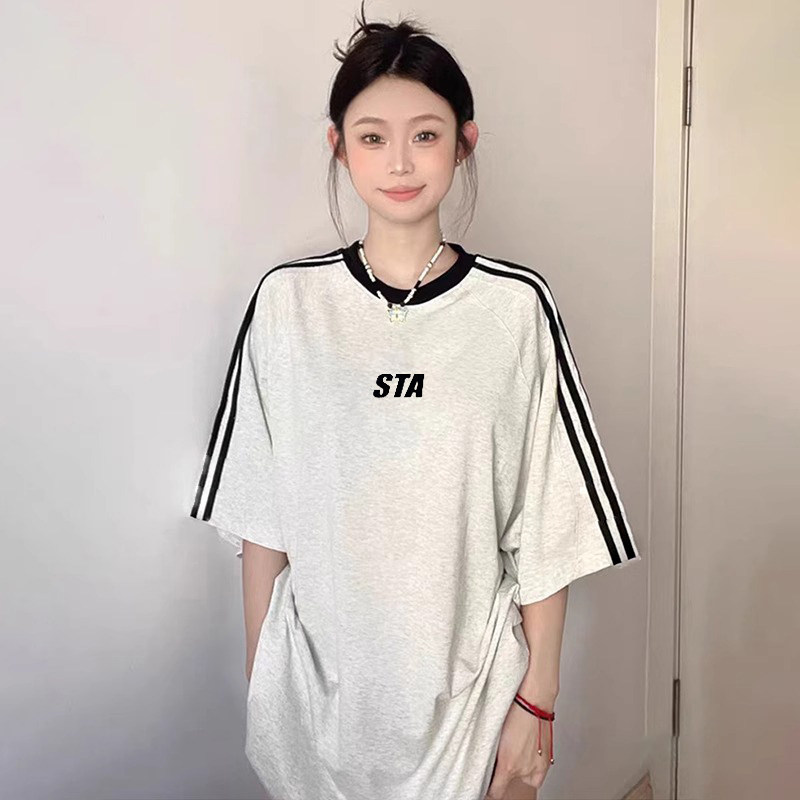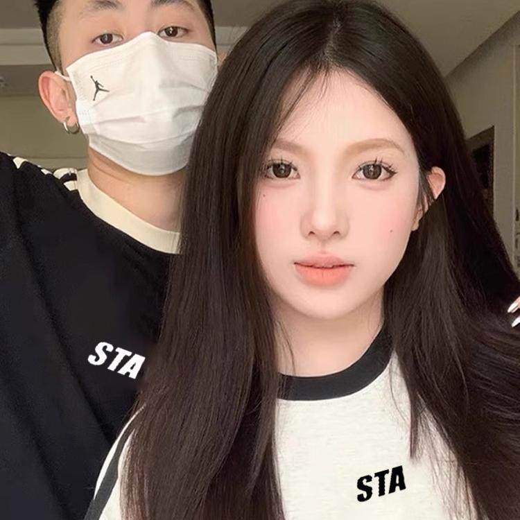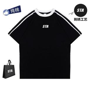 半袖 国潮正品 t恤男女情侣宽松纯棉刺绣款 STA旗舰店三条杆设计短袖