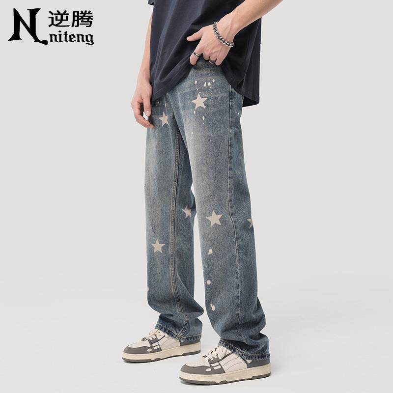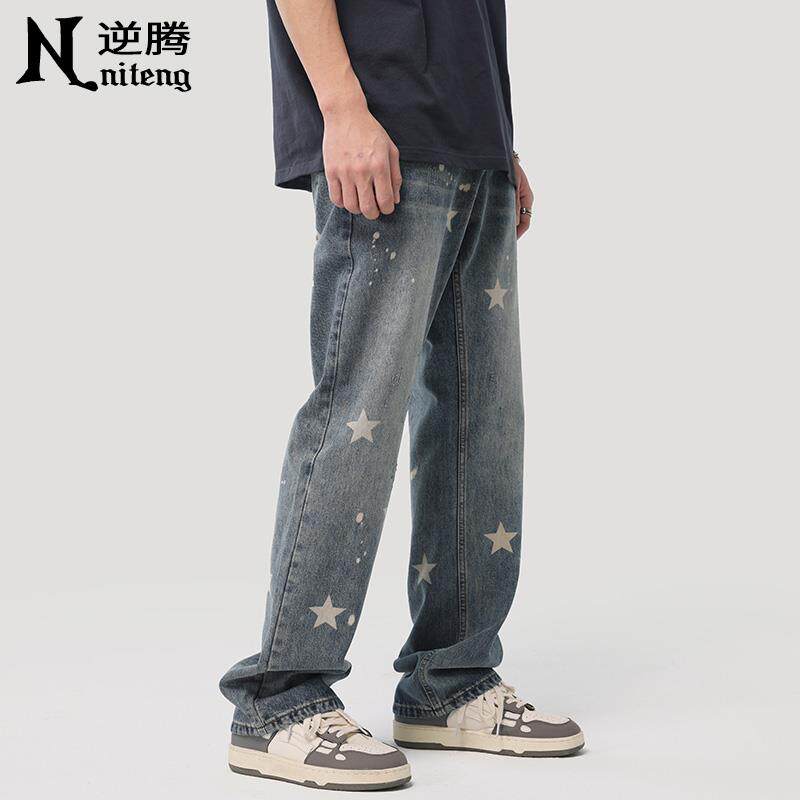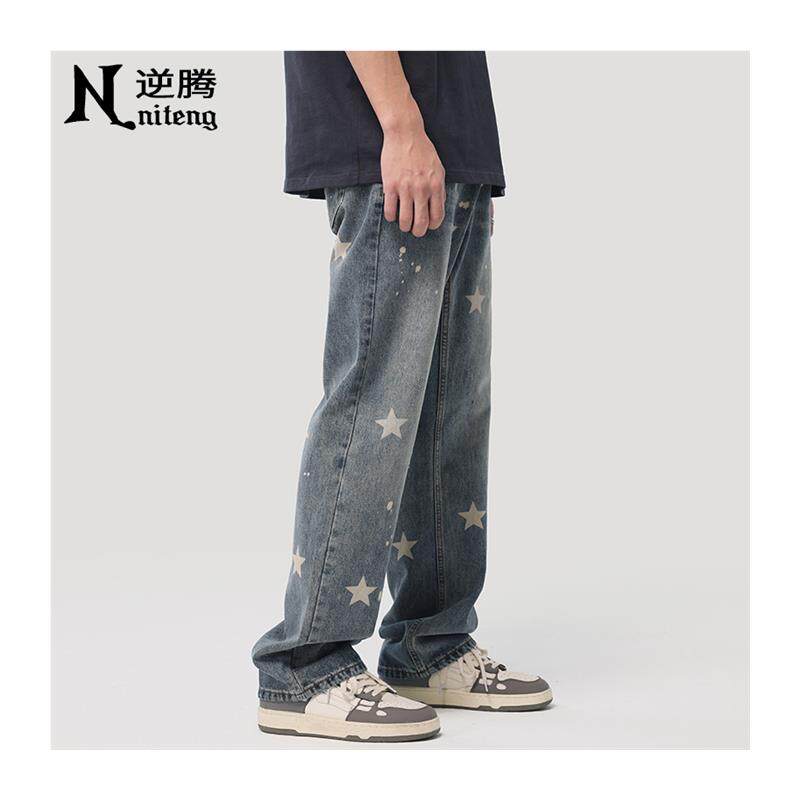 男2025新款 星星牛仔裤 宽松直筒男裤 水洗阔腿裤 春季 子男春秋款 美式