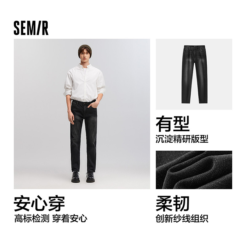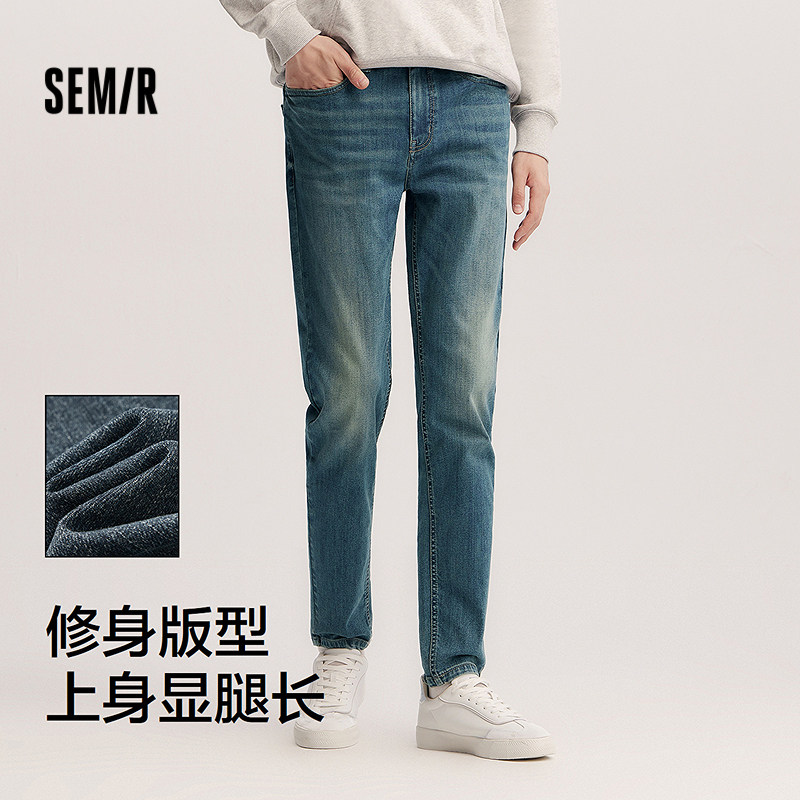 男修身 小脚裤 2025春季 森柔牛仔 长裤 森马牛仔裤 新款 复古 商场同款