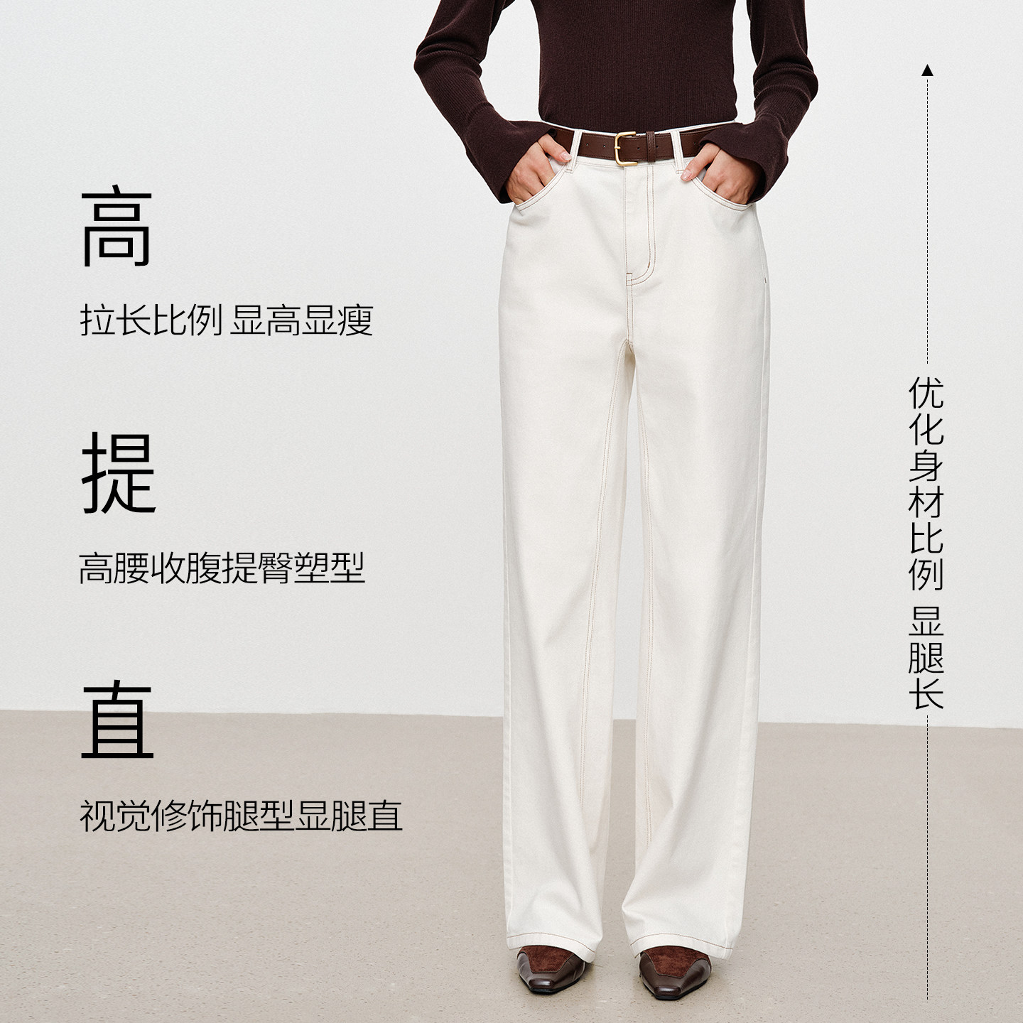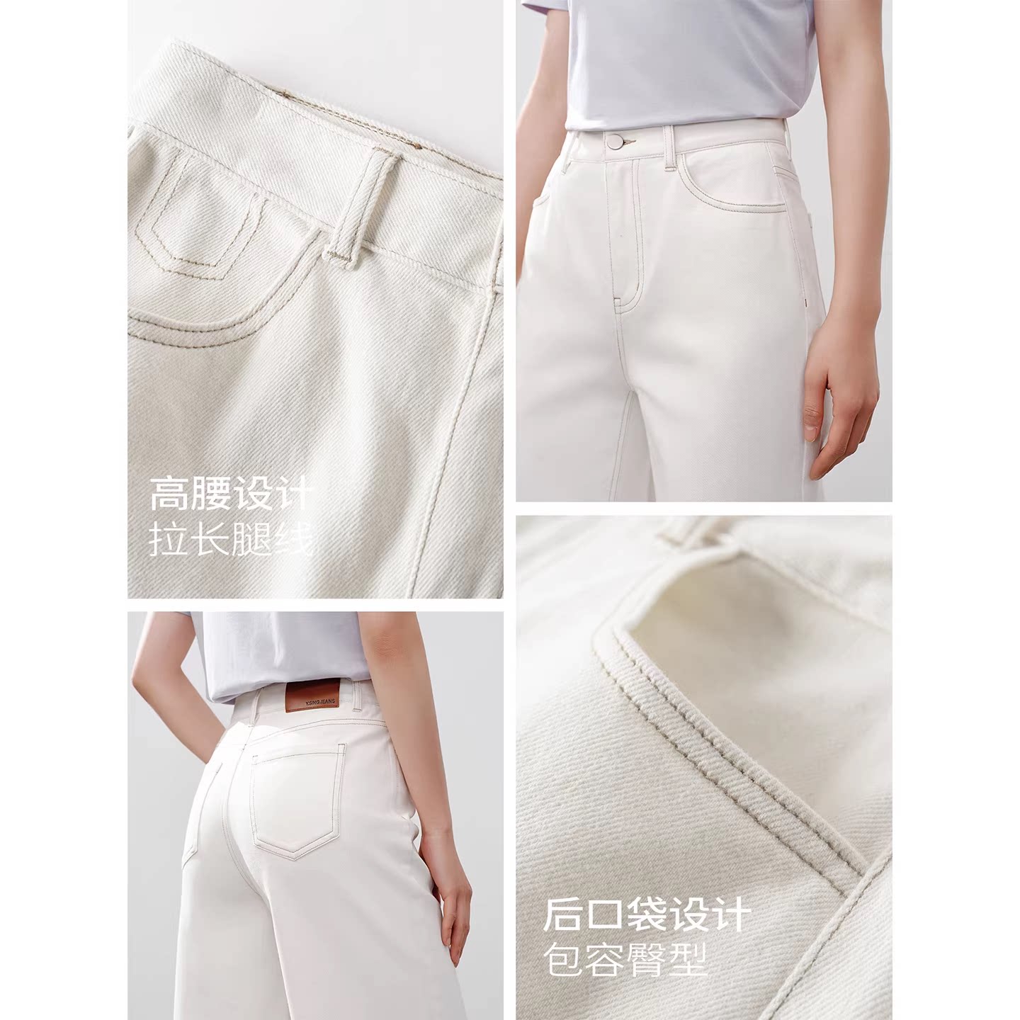 阔腿裤 衣香丽影白色三防高腰牛仔裤 宽松直筒裤 新款 子 女2026年春装