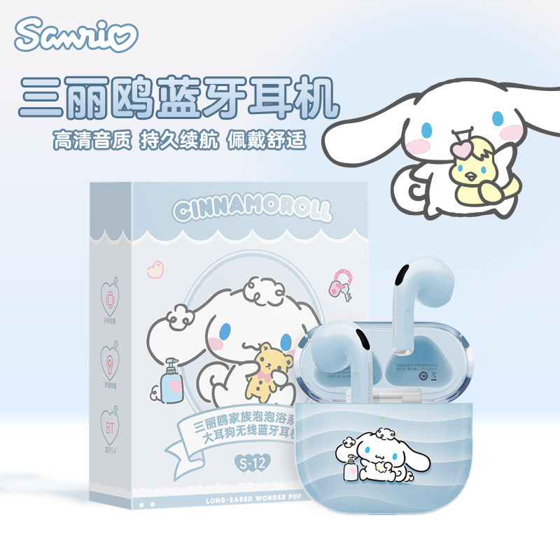 三丽鸥S12蓝牙耳机凯蒂猫&大耳狗情侣款 无线降噪男女游戏半入耳式