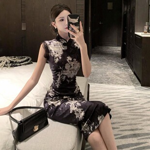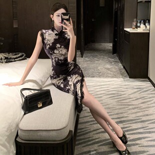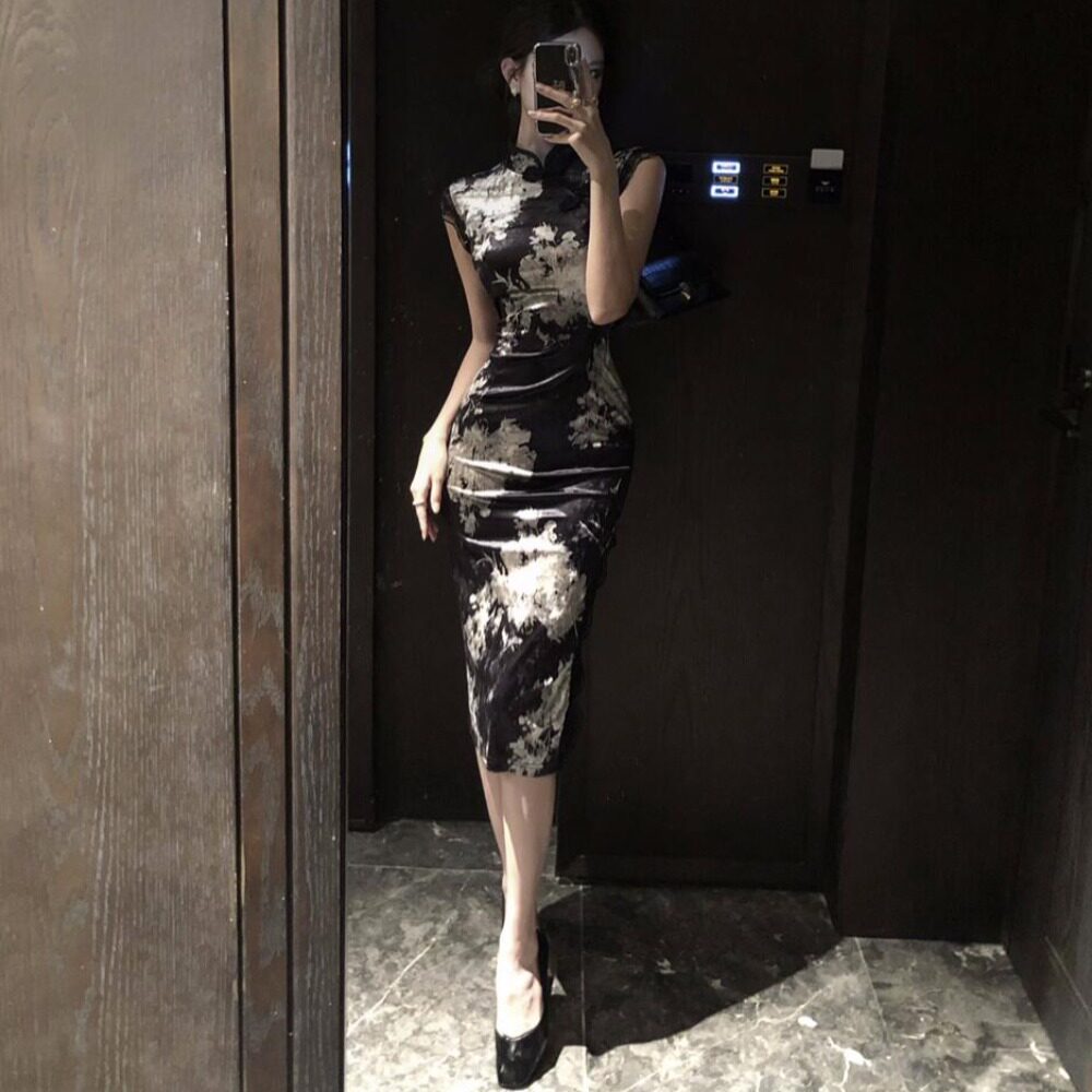 新中式 显瘦包臀开叉改良旗袍连衣裙女技师服 复古国风气质性感修身