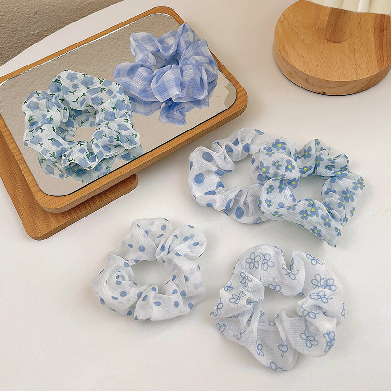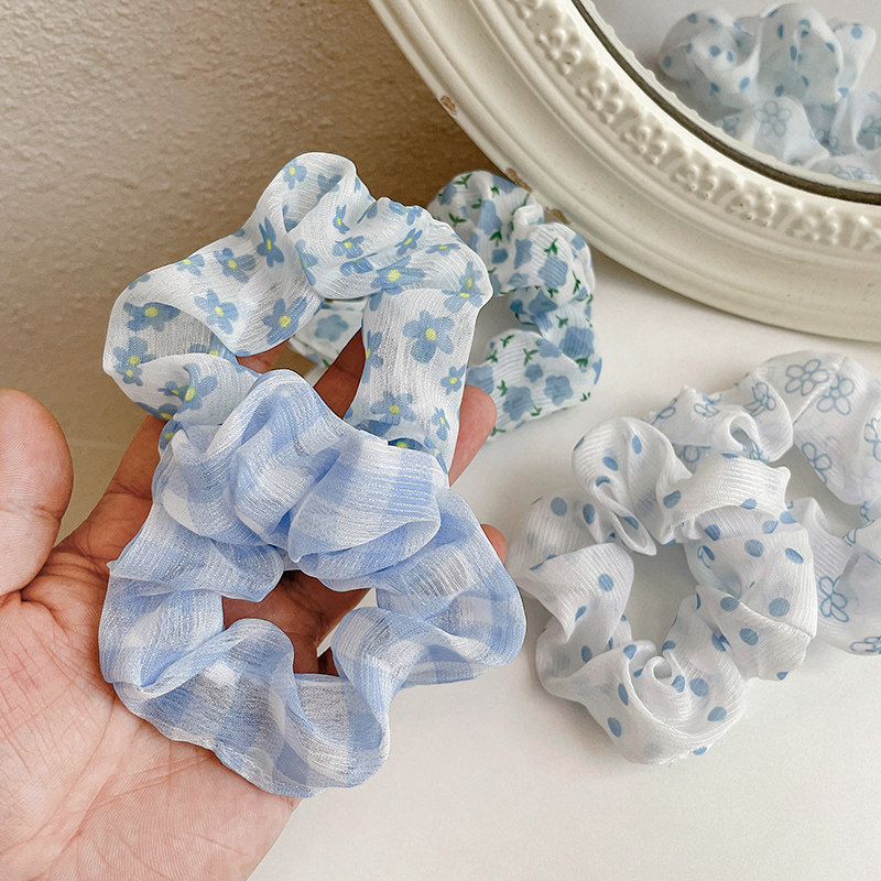 蓝色猪大肠发圈女发绳夏季 扎头皮筋简约气质ins网纱头绳皮筋头饰