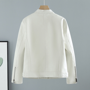 圆领上衣时尚 春秋季 修身 皮衣女韩版 机车黑色PU皮夹克短外套潮 新款