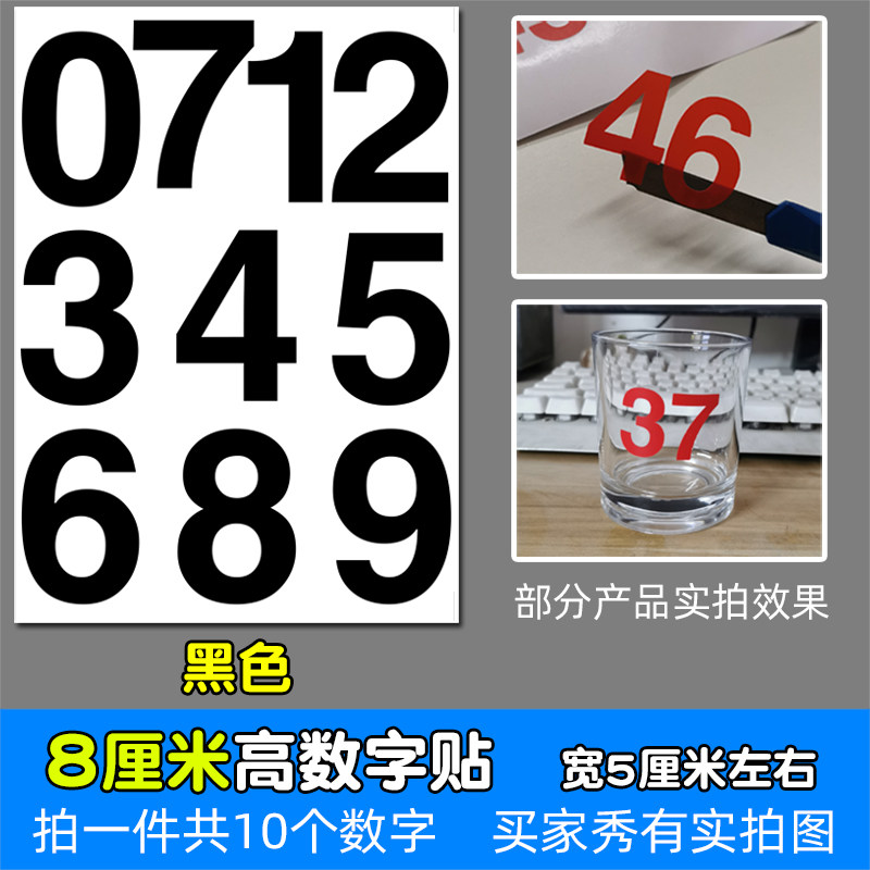 高8厘米防水不干胶数字即时贴纸pvc红色白色金色编组8CM镂空编号
