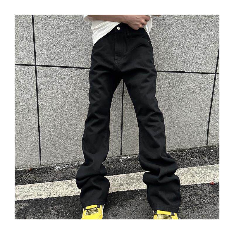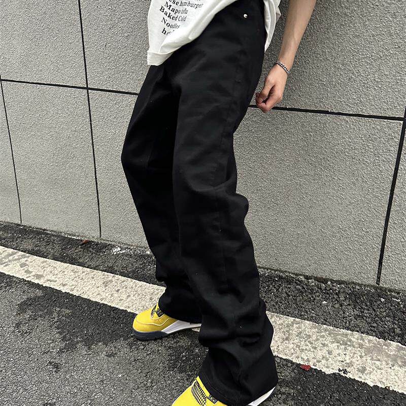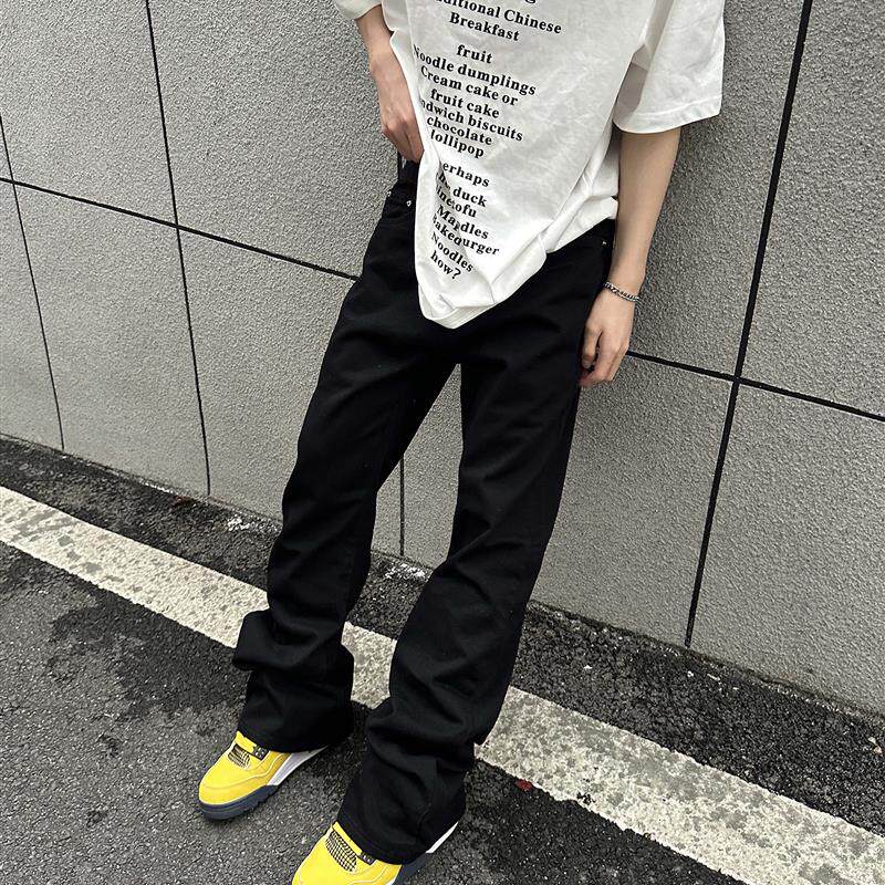 复古弯刀显瘦裤 男女美式 子 2024AW国潮原创黑色微喇牛仔裤 F383