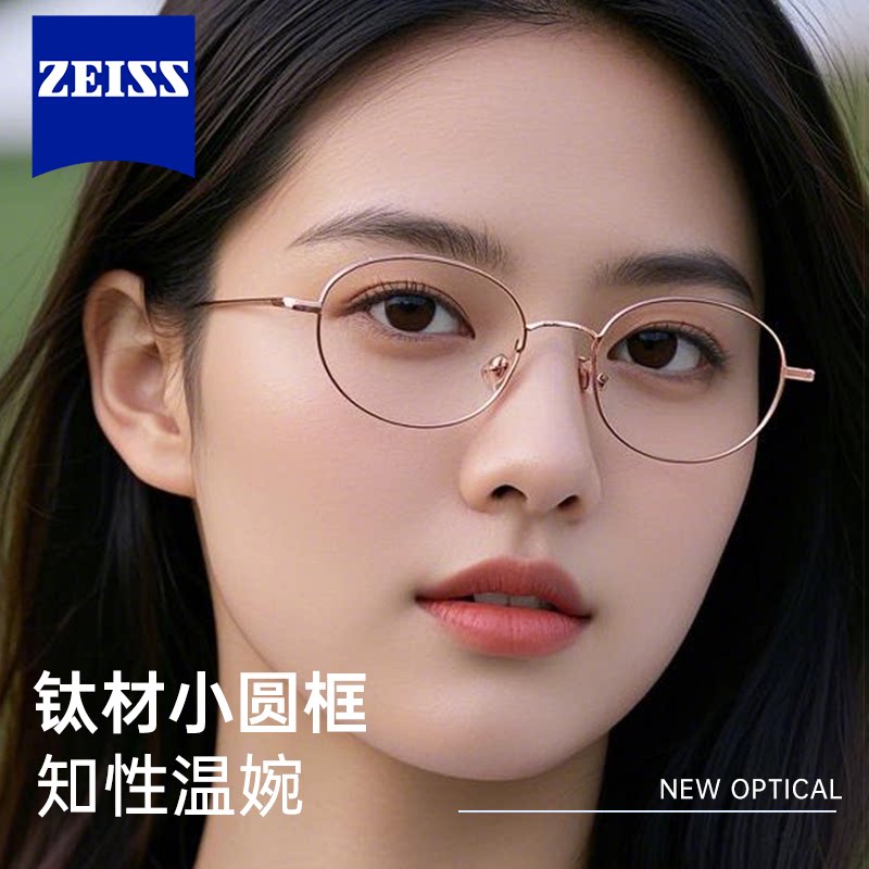 超轻椭圆小框钛材高度近视专业配镜蔡司眼镜可配度数小脸眼镜女