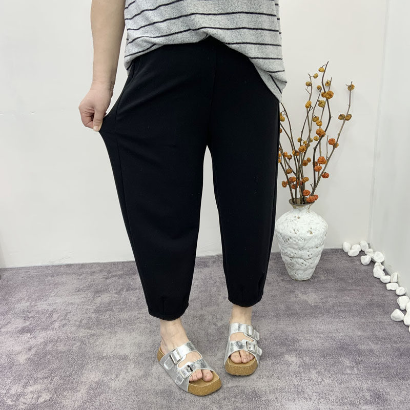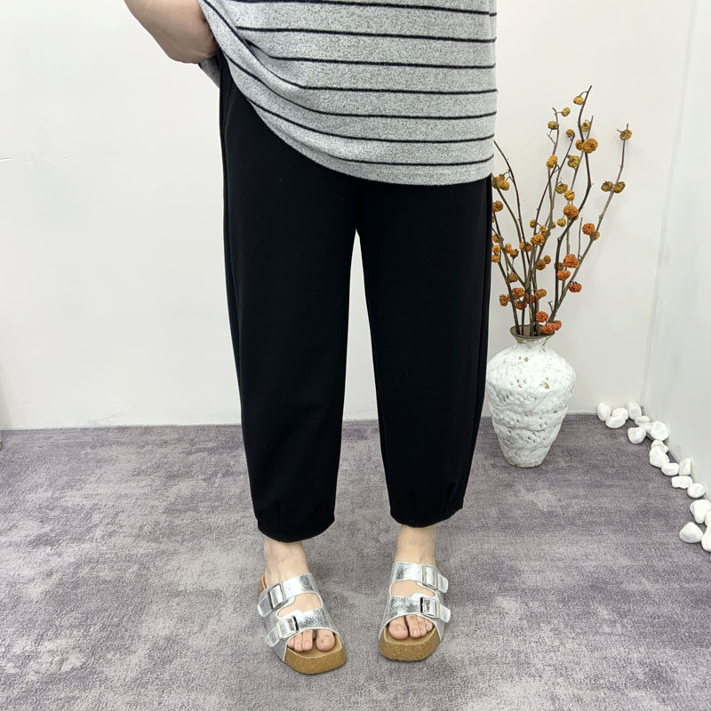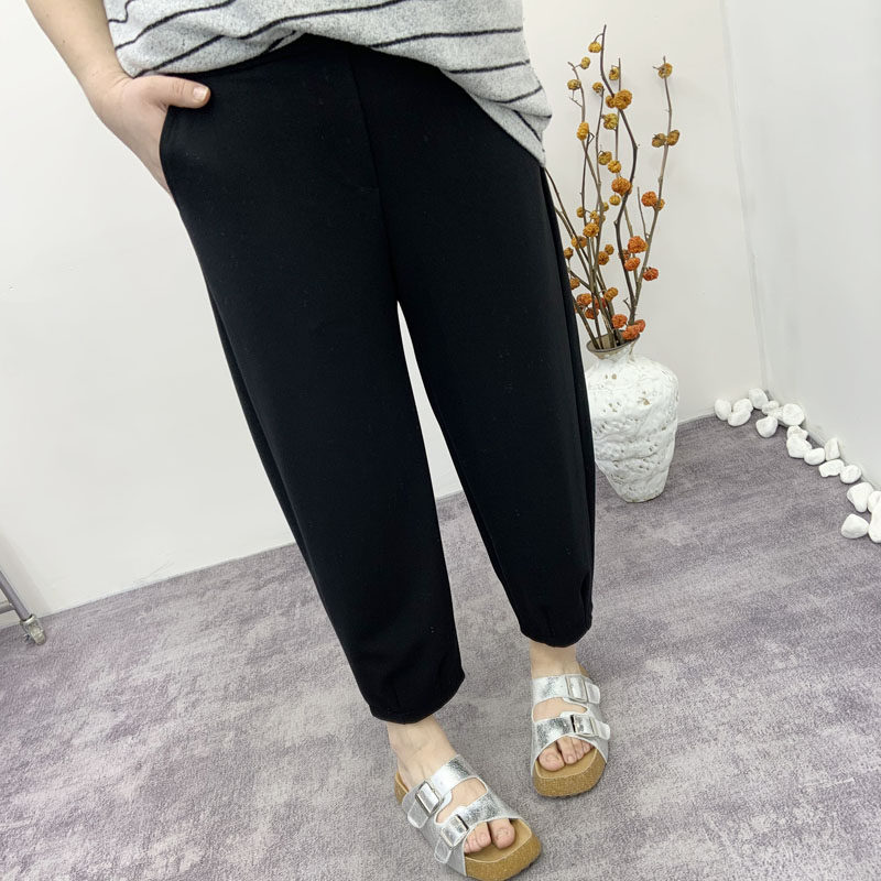 女秋冬垂感小个子雪尼尔香蕉裤 黑色阔腿裤 子 200斤胖mm窄版 加大码