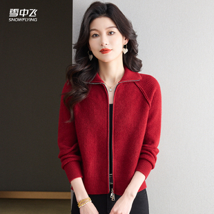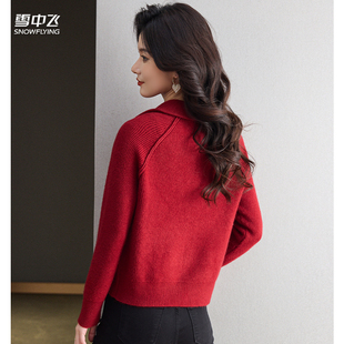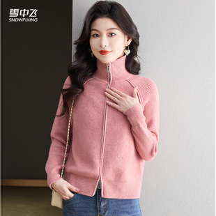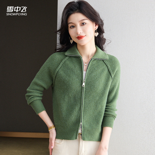 翻领女士外套休闲百搭针织衫 雪中飞25秋新款 双拉链针织开衫