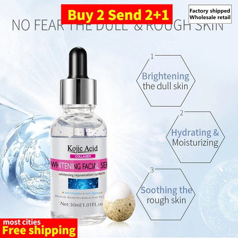 Whitening Collagen Facial Serum Lighten Kojic Hydrating Acid