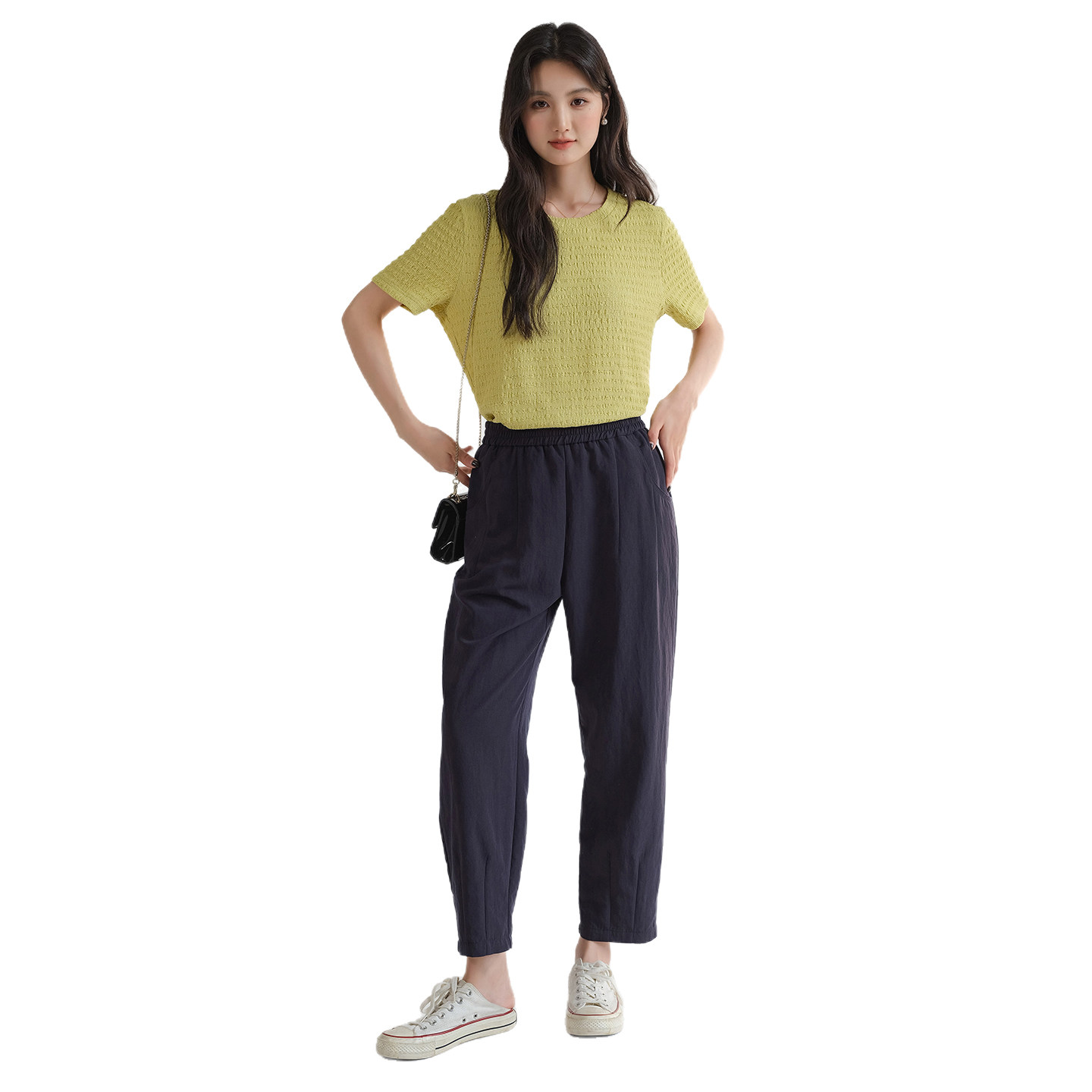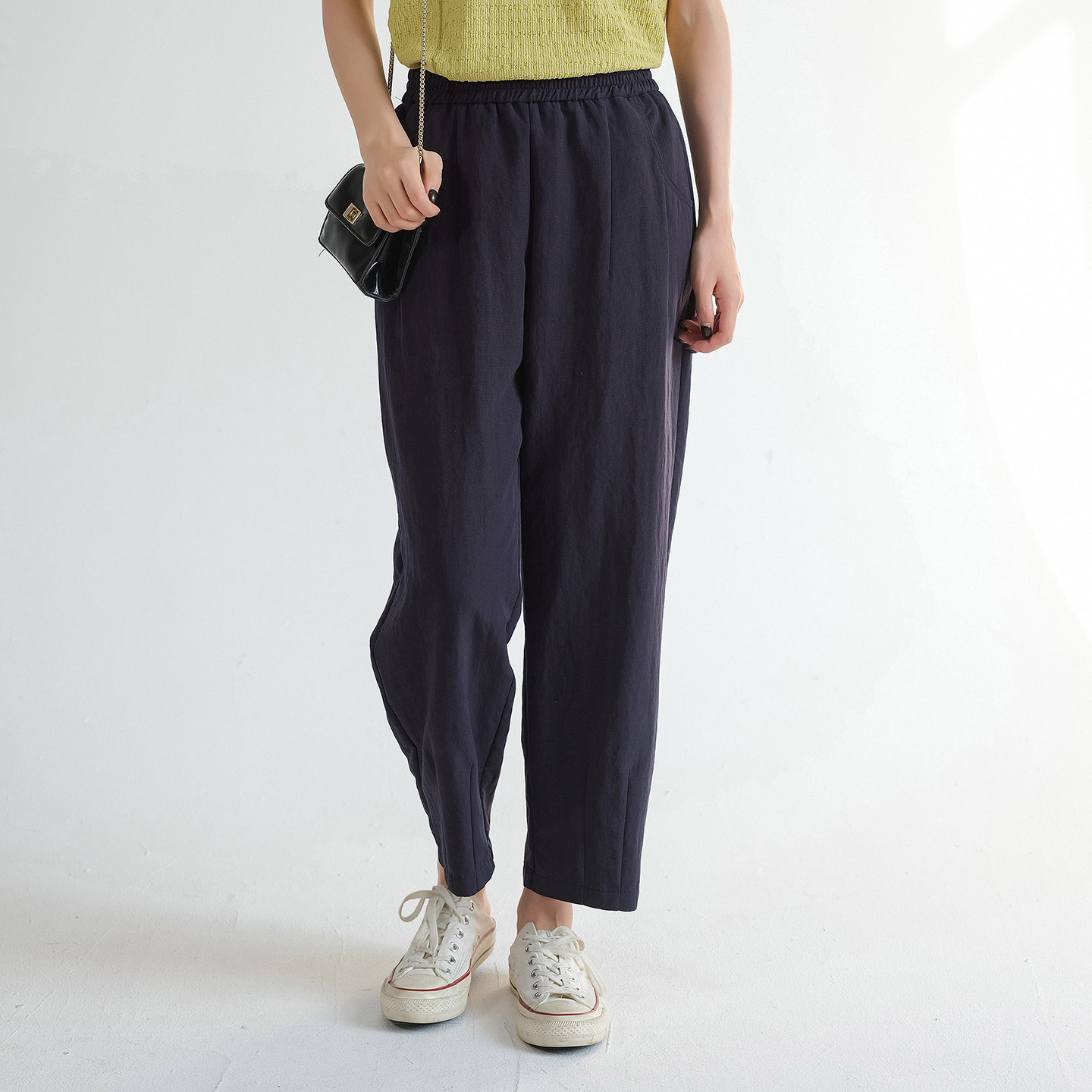 女装 小个子宽松休闲裤 高腰直筒萝卜裤 胖MM夏装 2026新款 蓝若水大码