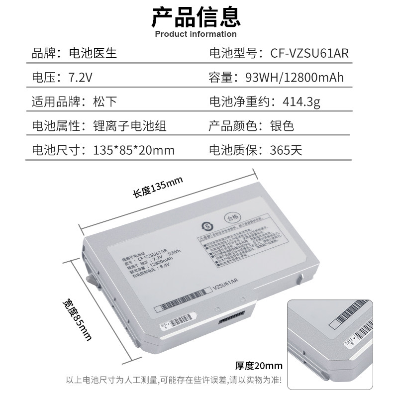 N10 VZSU61AJS S10 VZSU61AR电池 全新松下CF