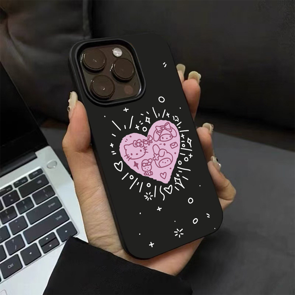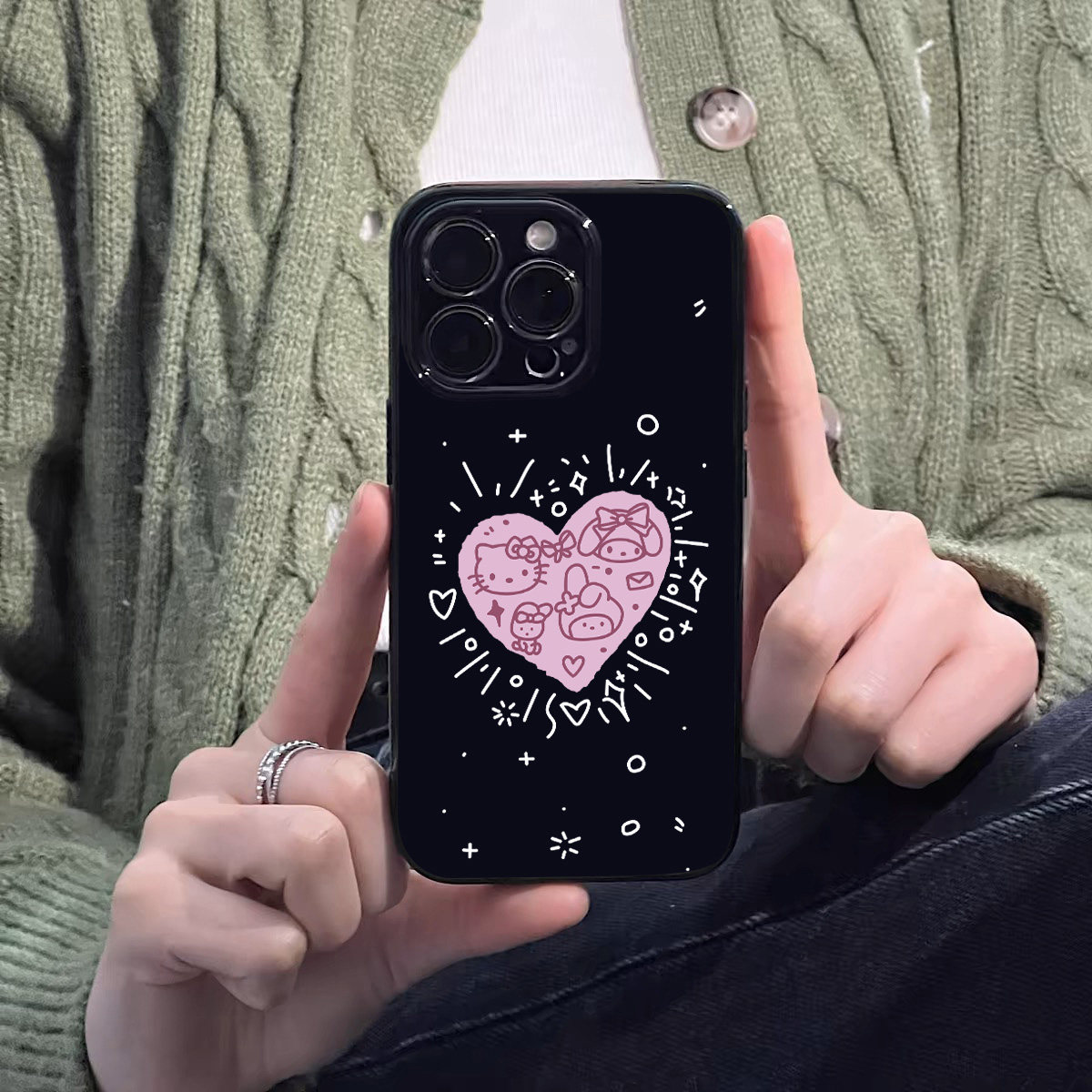 韩系ins爱心卡通可爱猫咪手机壳适用苹果17promax新款 iphone15亮黑色14pro磨砂超薄13硅胶12女16全包防摔软壳