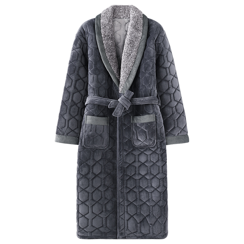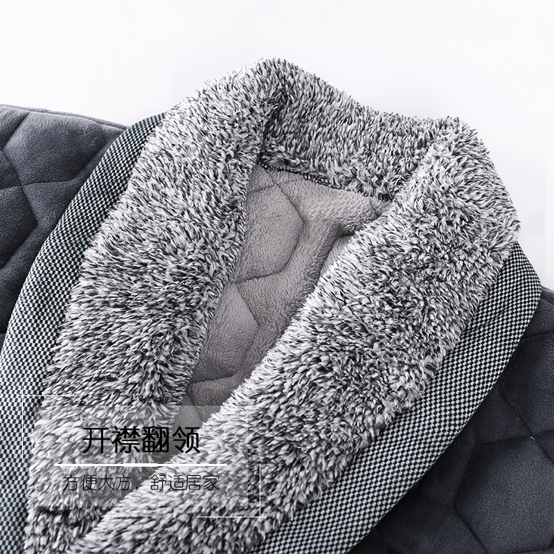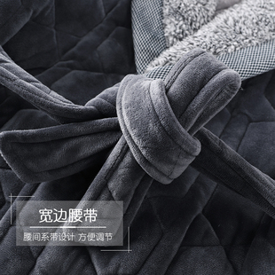 猫人睡袍男冬季 珊瑚绒夹棉袄睡衣三层加厚保暖加绒法兰绒浴袍