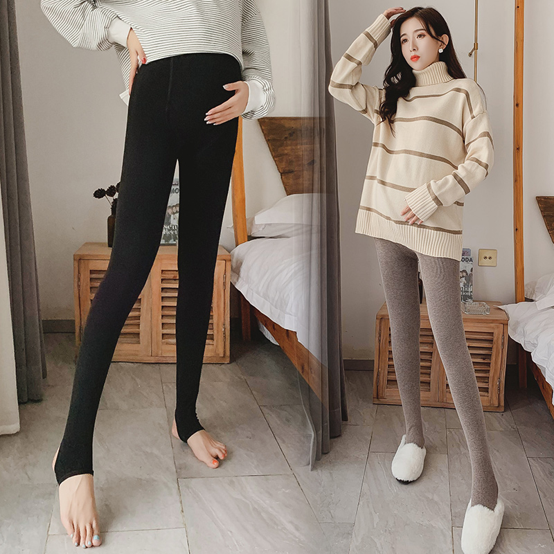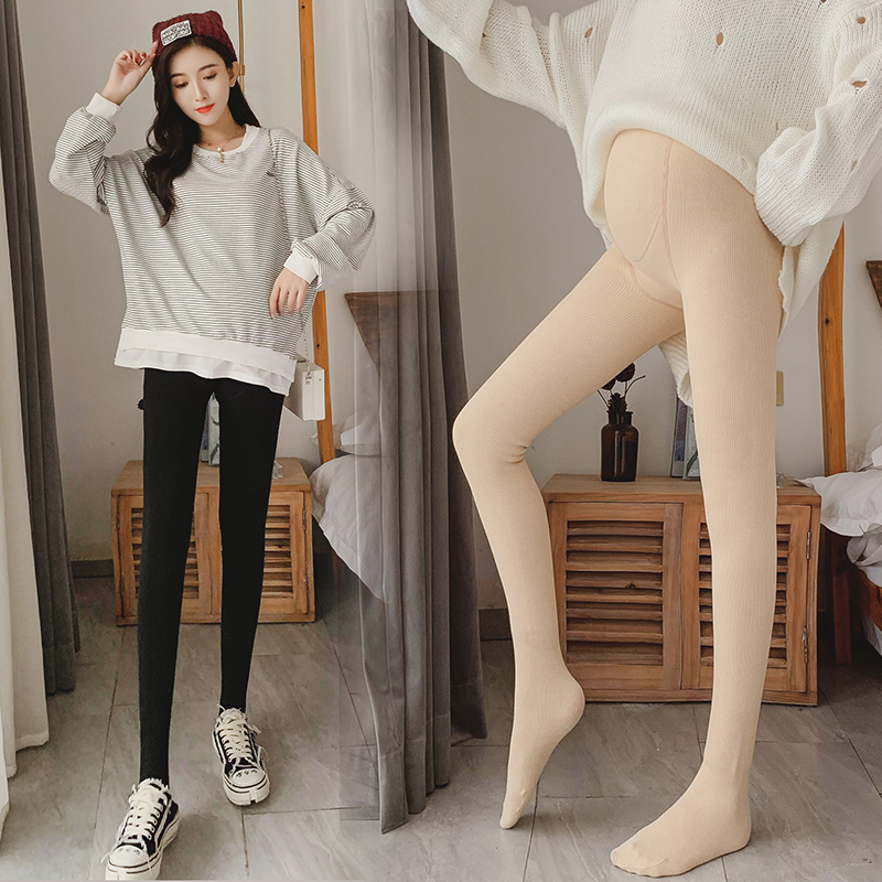 加绒加厚200斤竖条纹羊绒托腹一体裤 袜秋冬季 孕妇打底裤 加肥大码