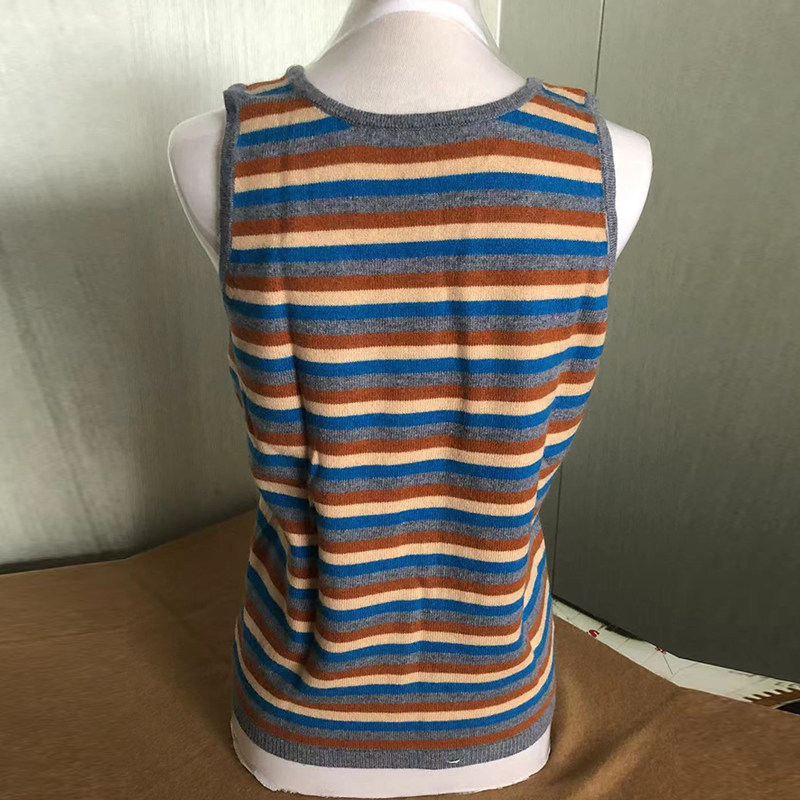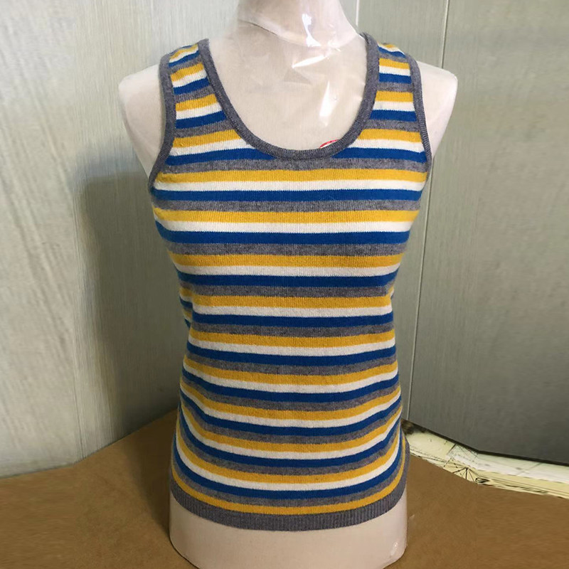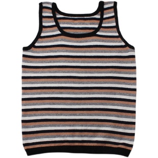 羊绒背心女春秋软糯条纹修身 针织螺纹内穿保暖贴身打底马甲护胃