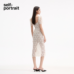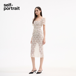 蕾丝方领钻饰修身 象牙白经典 连衣裙长裙 portrait self