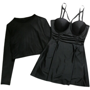 泳衣女夏大码 两件套 胖mm200斤显瘦遮肚黑色性感钢托聚拢连体裙式