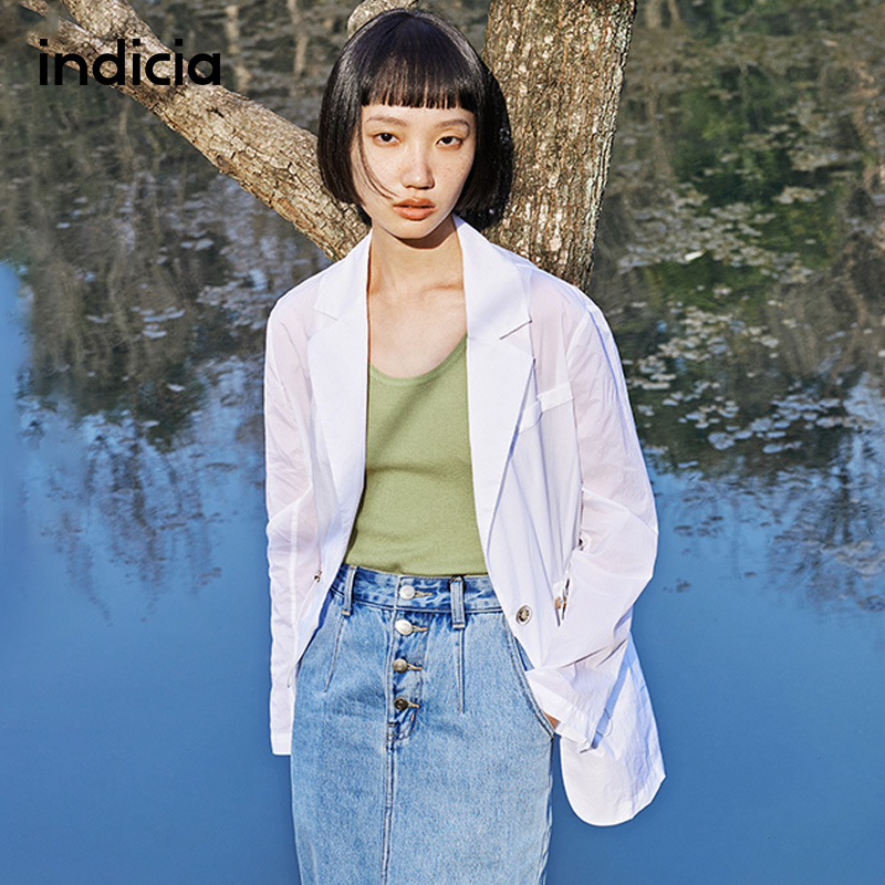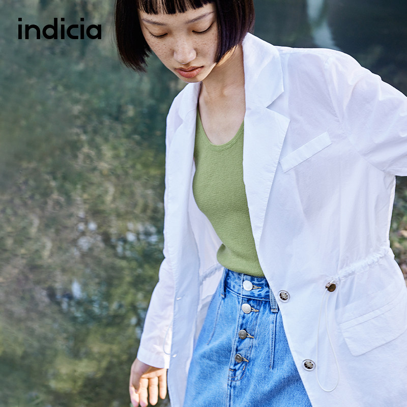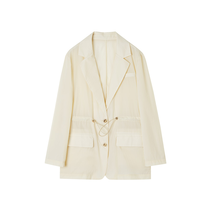 薄款 女装 白色西装 时尚 潮 外套抽绳杏色上衣春夏季 indicia
