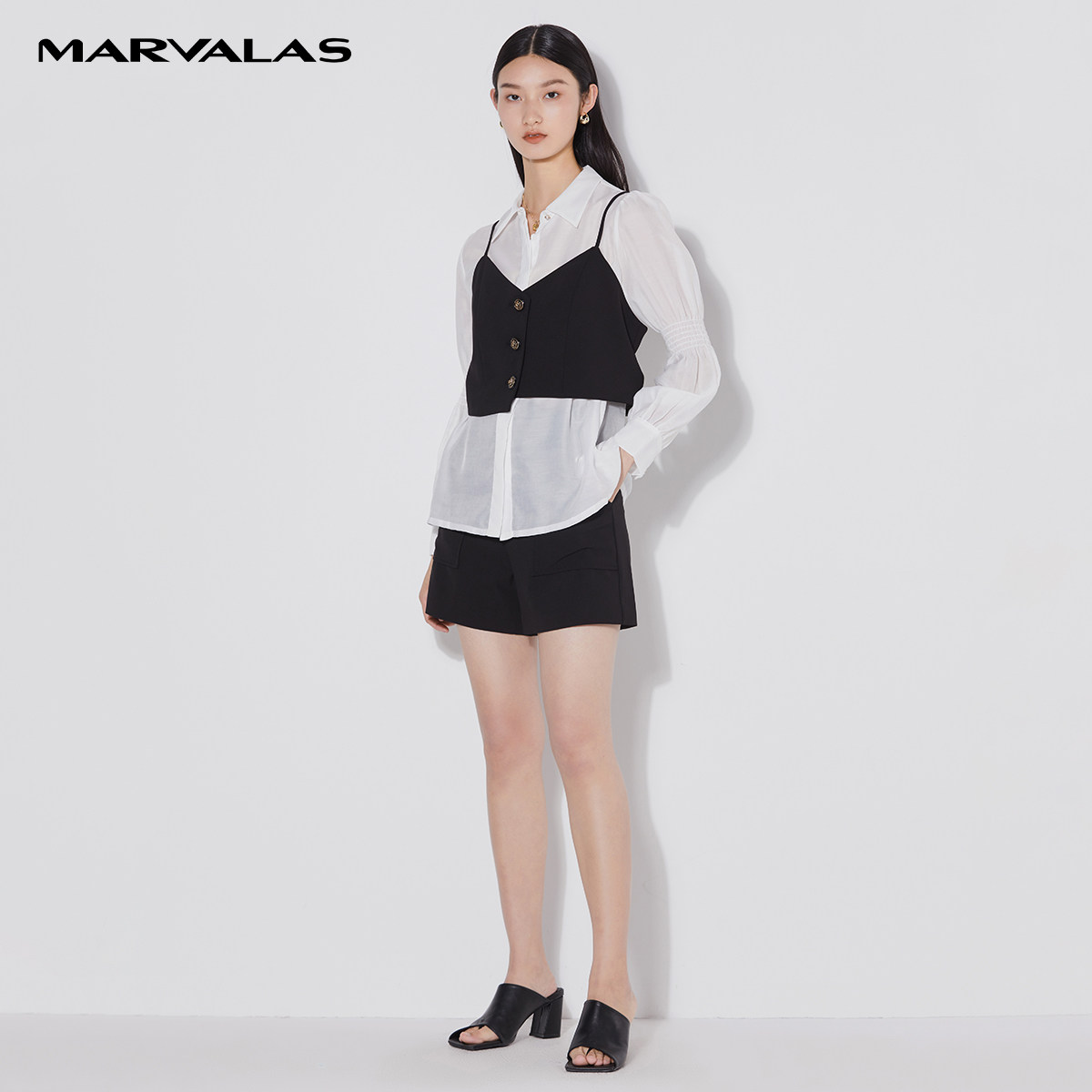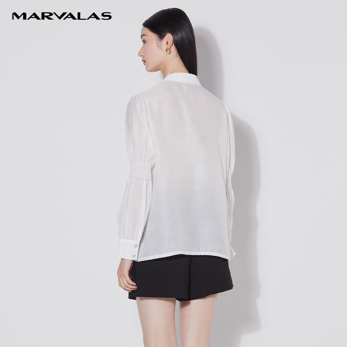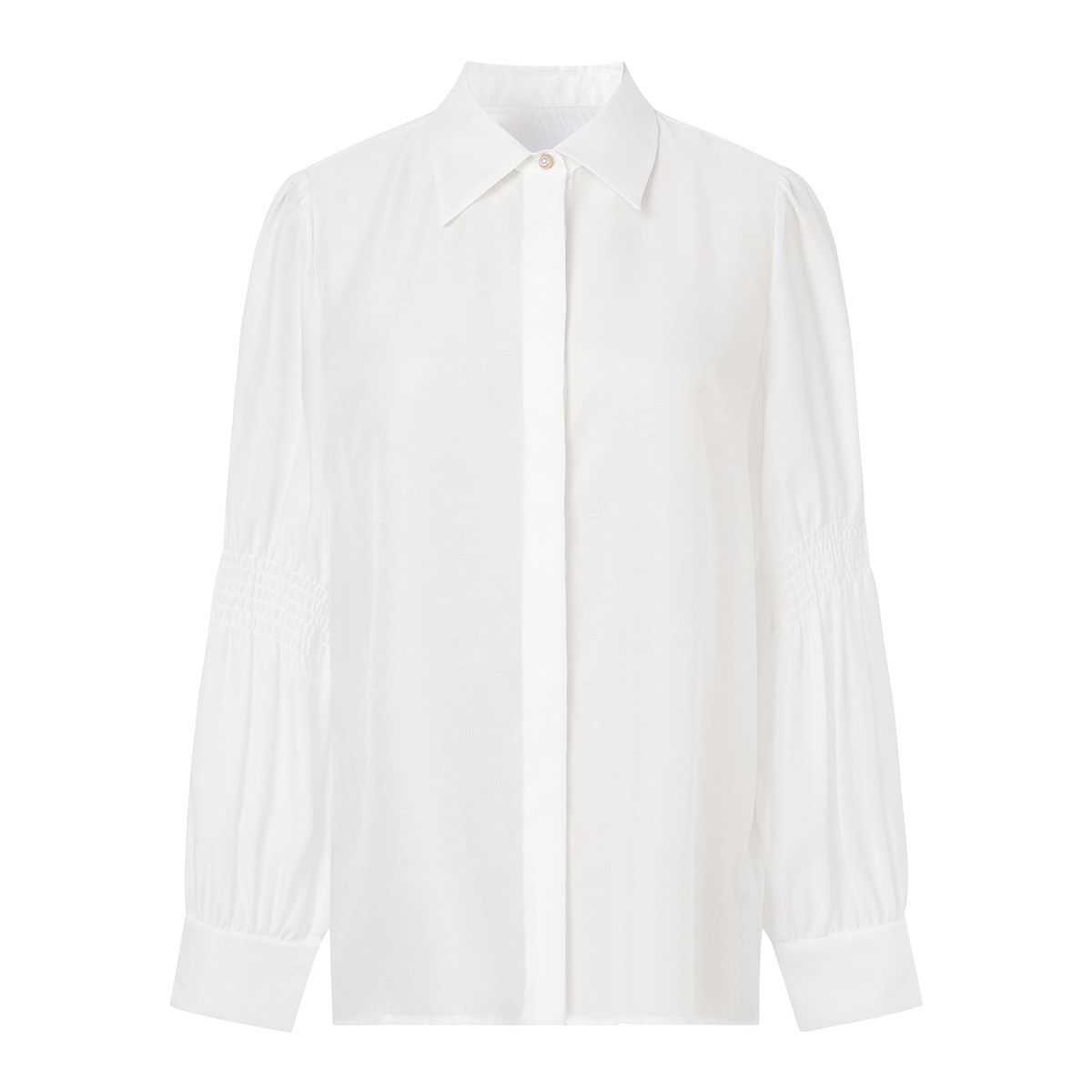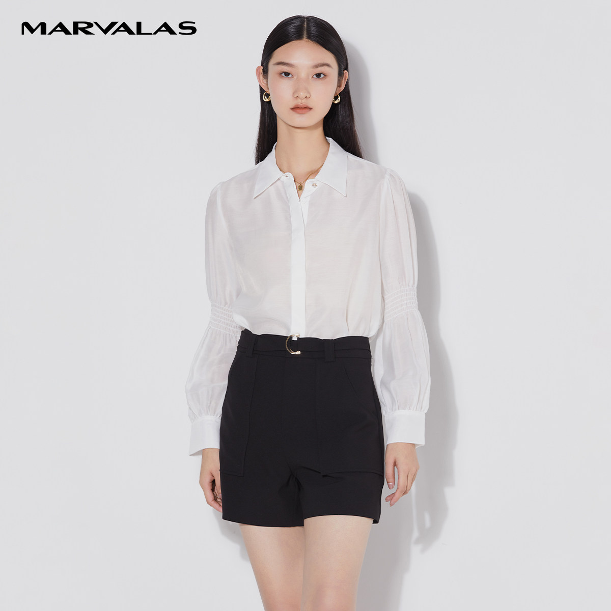 职场通勤小尖领设计打揽雪纺上衣 新款 曼德诗白色衬衫 女2026年夏季