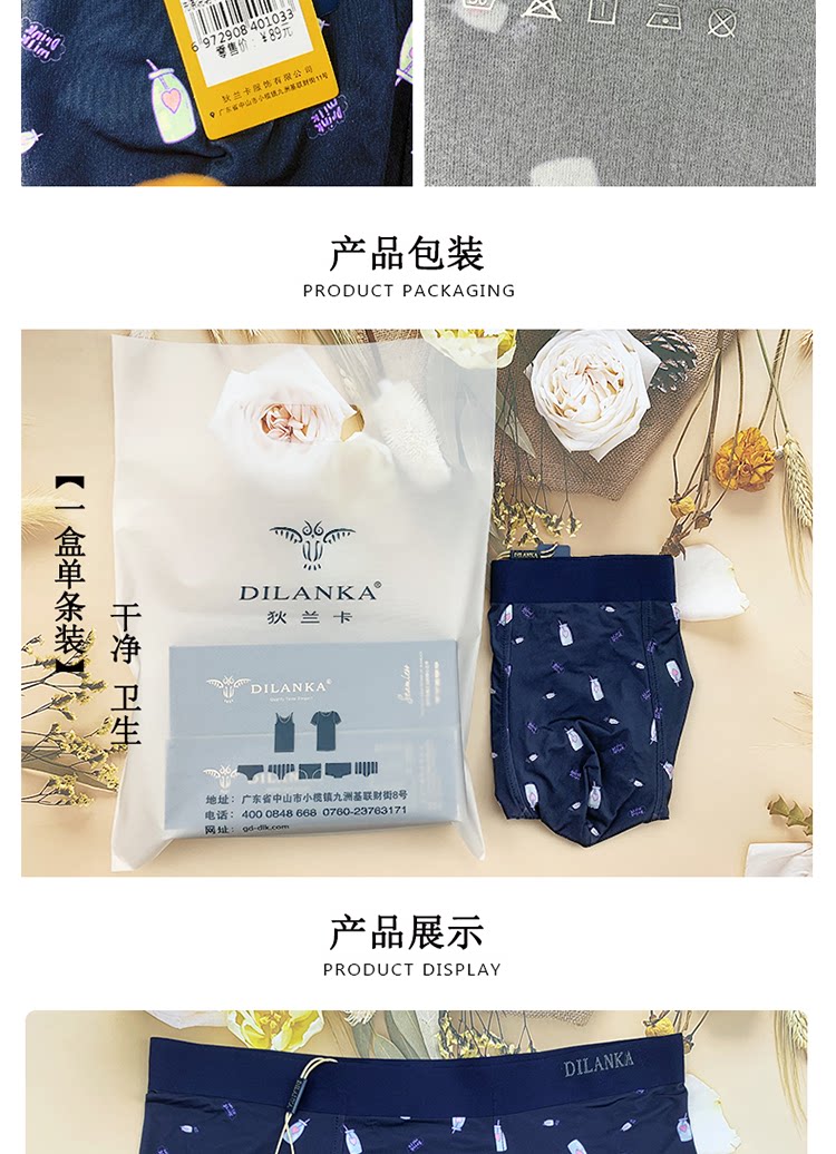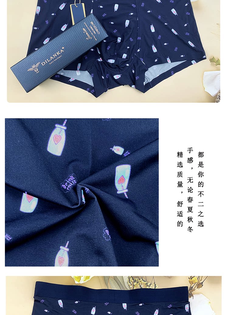 男裤 平角打底内裤 狄兰卡冰丝牛奶丝透气排汗速干运动男士 新款