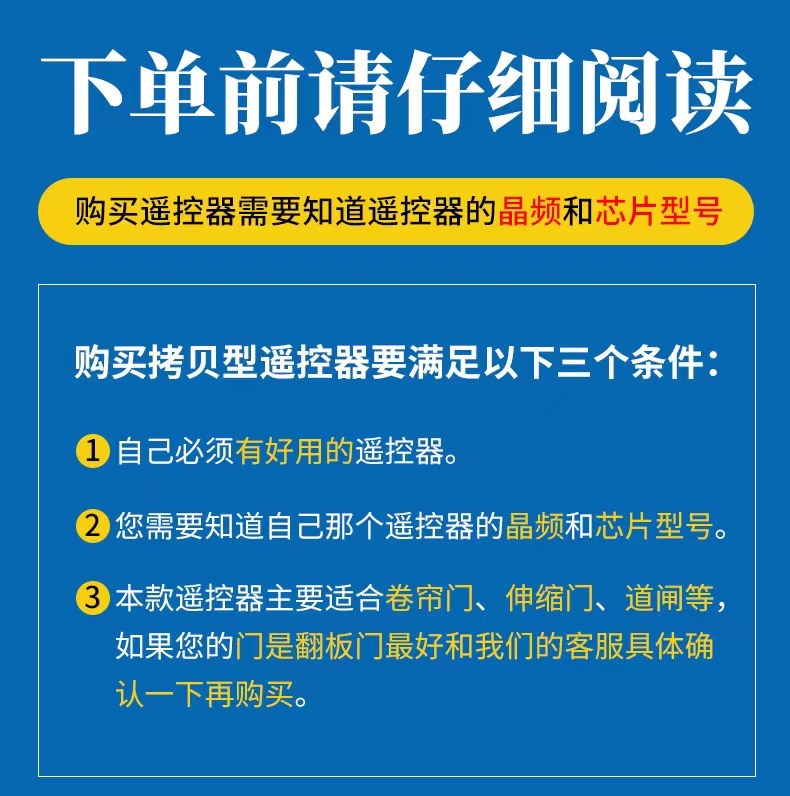 通用对拷贝手柄电动卷帘门卷闸门道闸门钥匙车库门遥控器433 315
