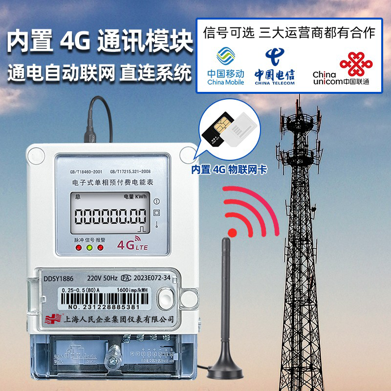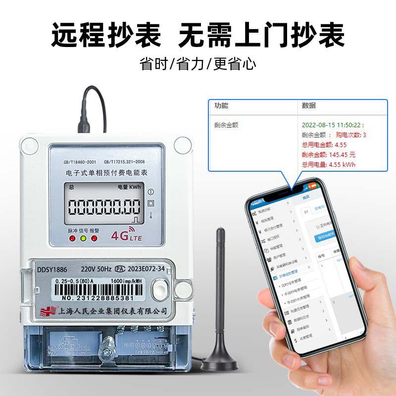 民一单相贝贝4G远程智能预付费电表GPRS无线抄表手机充值远传电表