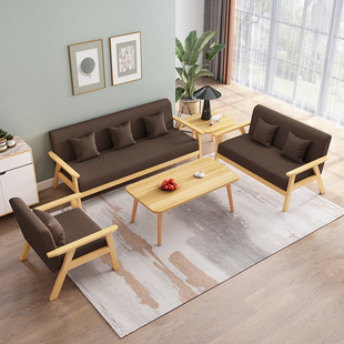 沙发茶几组合简易小户型客厅出租房现代简约实木布艺三人位办公椅