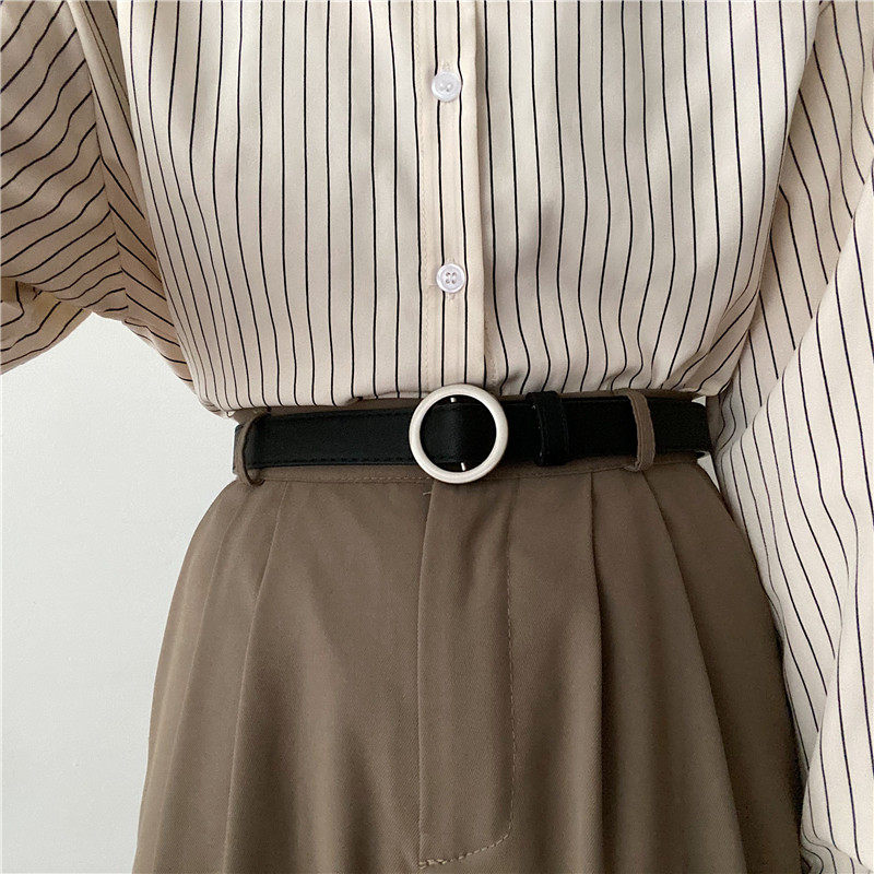 新款 ins风牛仔裤 时尚 带学生韩版 腰带细 免打孔裤 无孔皮带女士夏季
