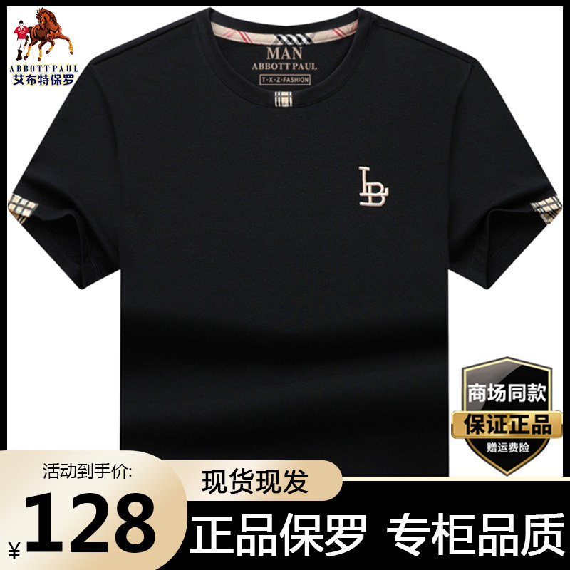 休闲百搭半袖 宽松大码 白t t恤男夏季 专柜保罗高档丝轻奢丝光棉短袖