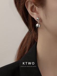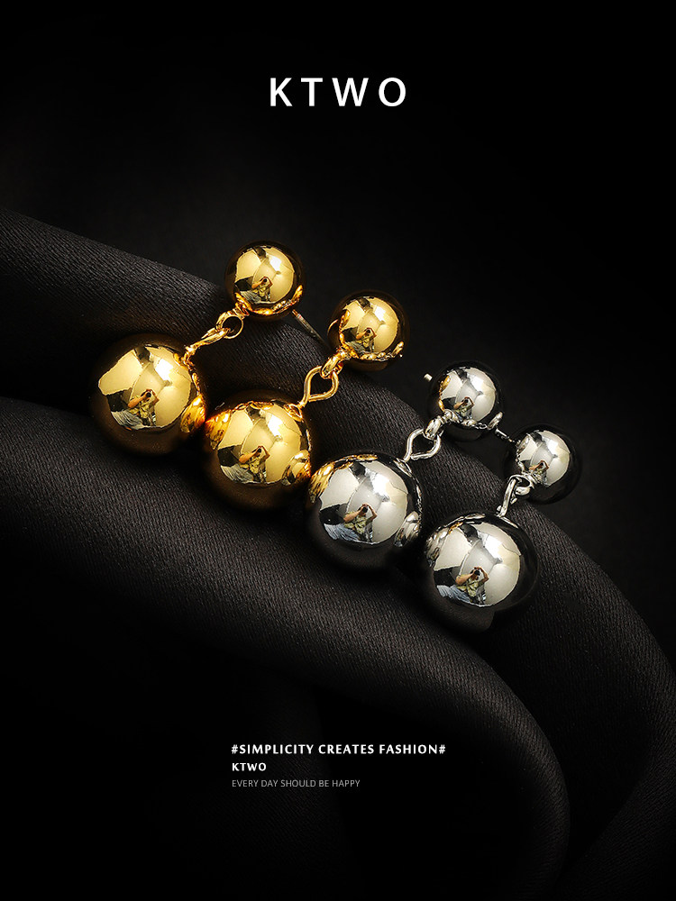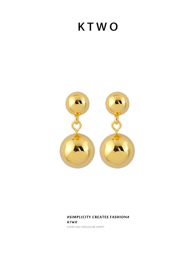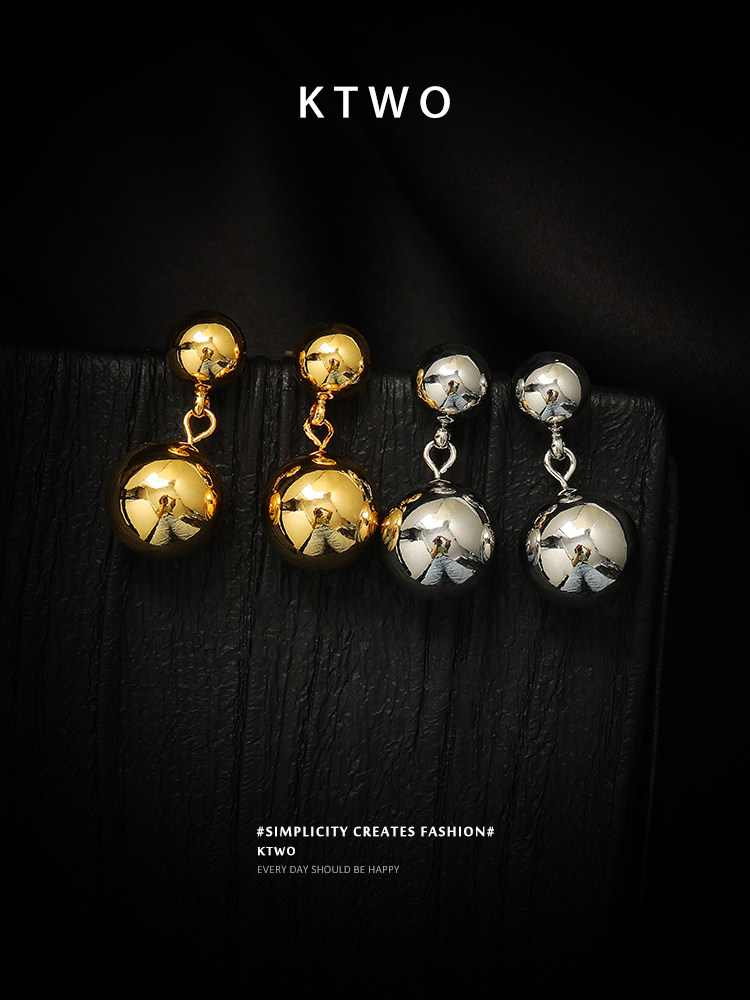 欧美简约个性 高级耳饰 亮面圆球耳钉女小众设计k金色轻奢银针时尚