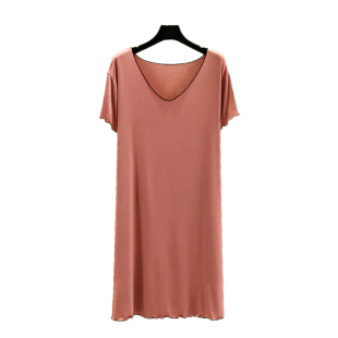 夏季 v领打底裙薄款 宽松家居睡裙百搭休闲裙 连衣裙大码 莫代尔短袖