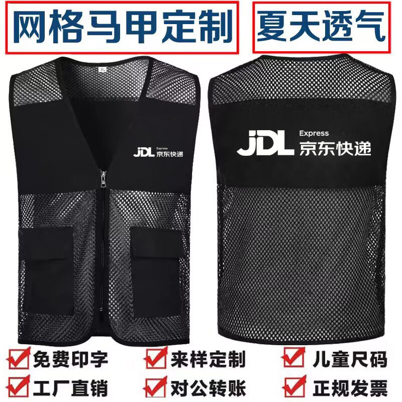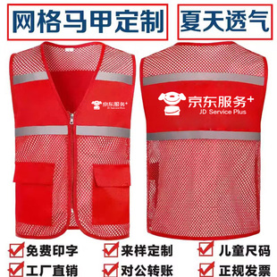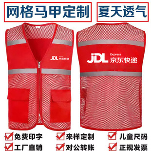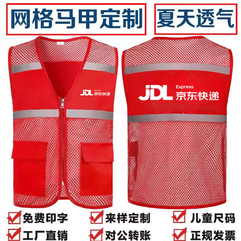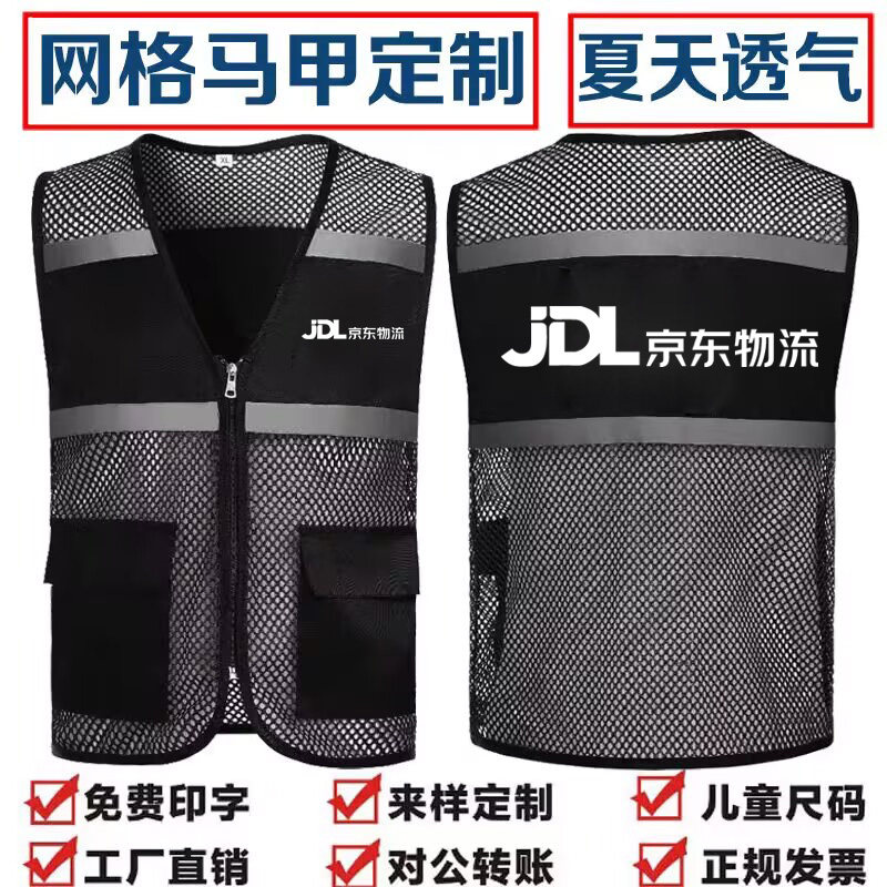 京东物流快递服务工作服马甲定制印logo字反光条网纱透气劳务背心